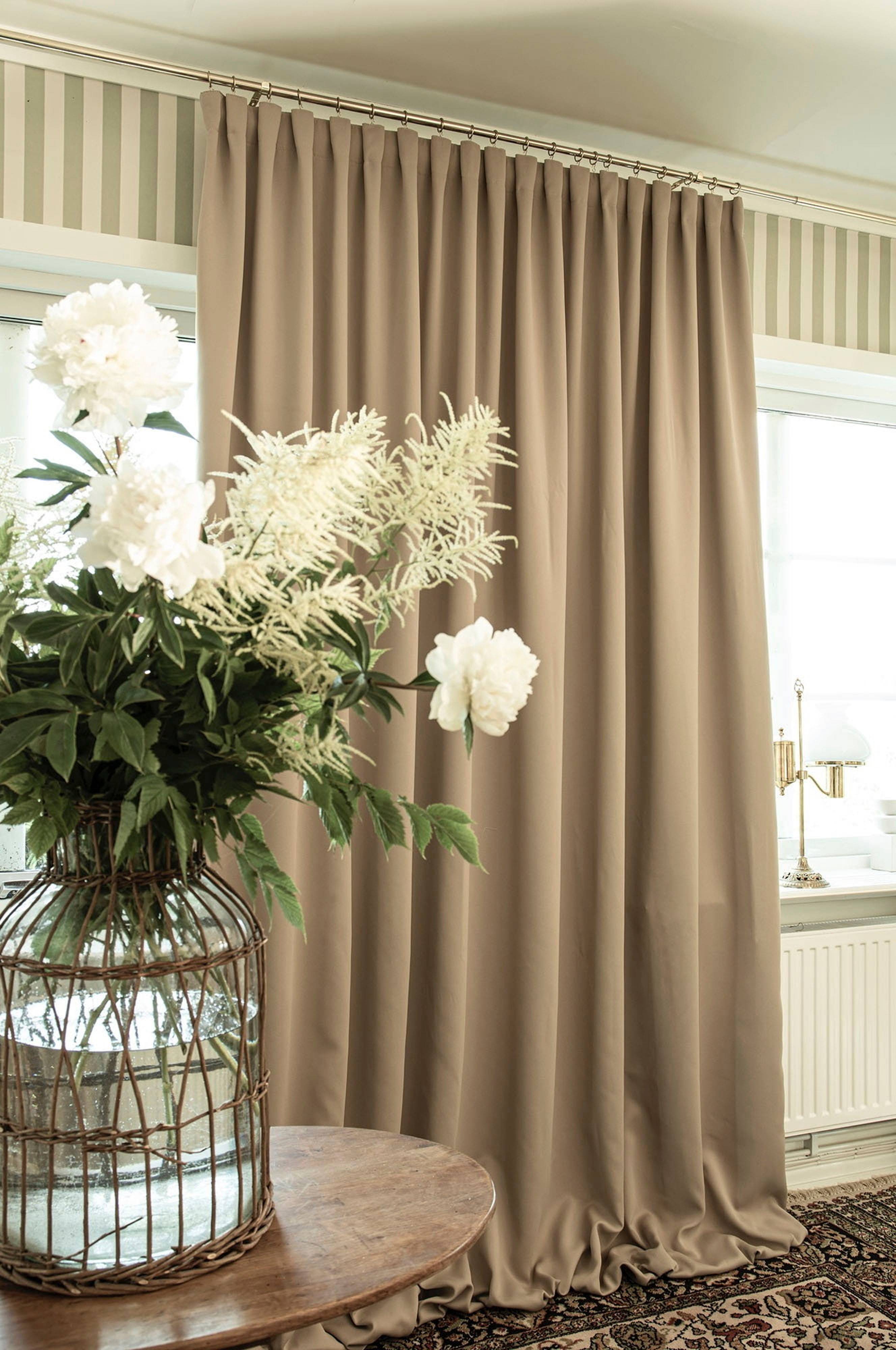 Gardin i ett mjukt, återvunnet tyg. Observera att en gardin utan mörkläggningsskikt aldrig kan stänga ute 100% av ljuset, utan endast förmörkar rummet och stänger ute det mesta av ljuset. Förpackningen innehåller 1 st gardinlängd.
