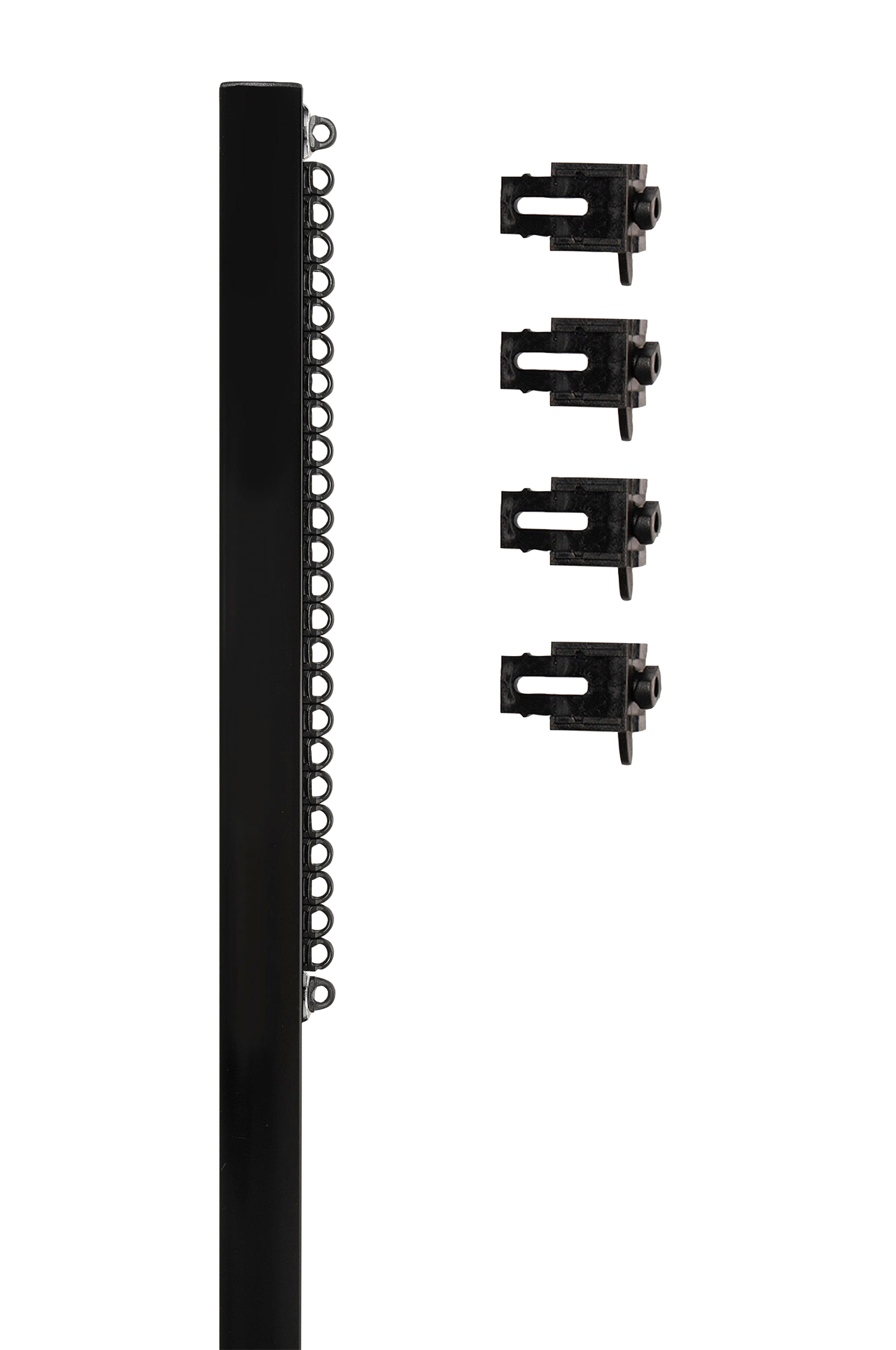 Komplett gardinstång med lätt böjd front, tillverkad av återvunnet material. Levereras med takfästen, ändbeslag, vridstopp och glid (15 st/m) för en komplett upphängning. Lämplig för lätta till medeltunga gardiner.