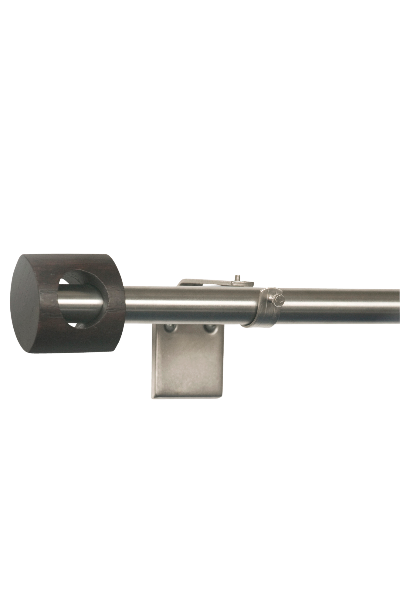 Komplett gardinstångset i metall med träändknoppar, 18/20 mm. Setet innehåller justerbara stänger 130-240 cm, 2 st ändknoppar, 3 st justerbara väggfästen (7-9 cm) med väggbeslag. I setet ingår även förlängningsdelar till väggfästen (totalt max 14 cm) som med fördel används till fönster med fönsterbrädor för att ge gardinen ett snyggt fall.