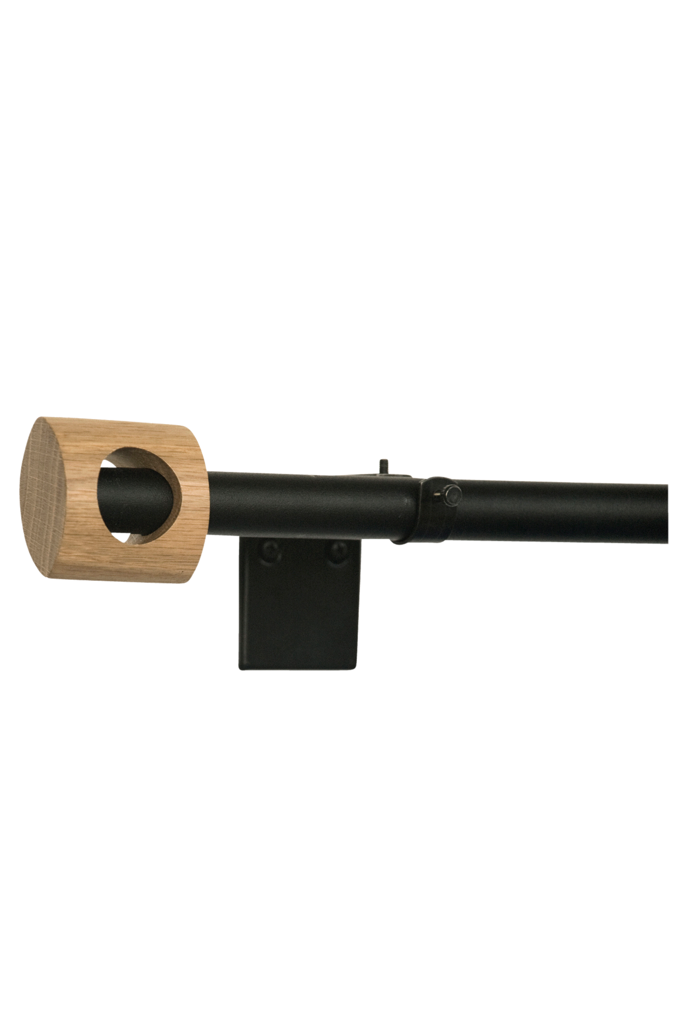 Komplett gardinstångset i metall med träändknoppar, 18/20 mm. Setet innehåller justerbara stänger 130-240 cm, 2 st ändknoppar, 3 st justerbara väggfästen (7-9 cm) med väggbeslag. I setet ingår även förlängningsdelar till väggfästen (totalt max 14 cm) som med fördel används till fönster med fönsterbrädor för att ge gardinen ett snyggt fall.