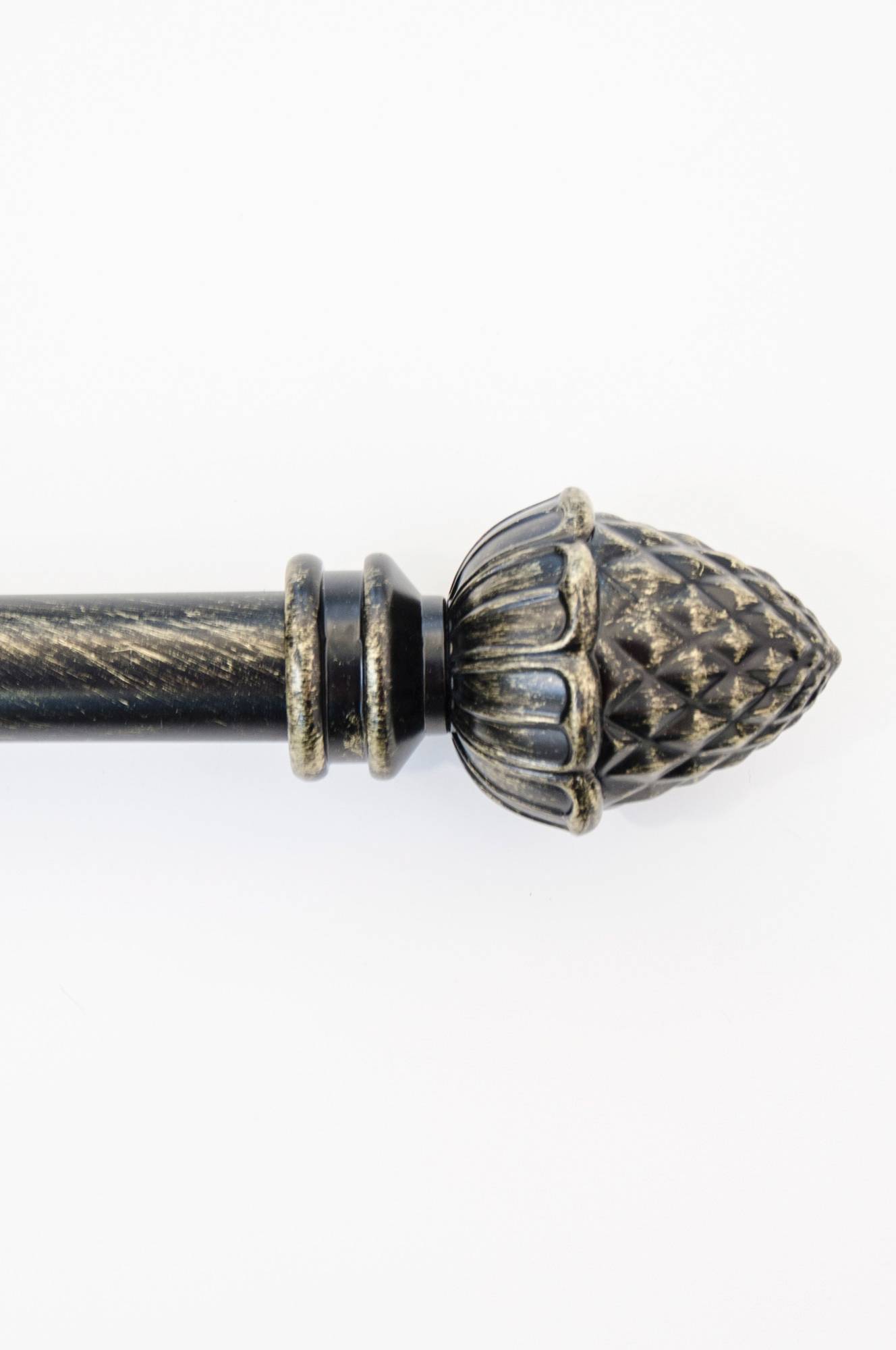 Komplett klassiskt gardinstångset i metall, 25/28 mm. Setet innehåller justerbara stänger 200-380 cm, 2 st ändknoppar och 3 st justerbara väggfästen (9-14 cm). Knoppens längd 9 cm.
