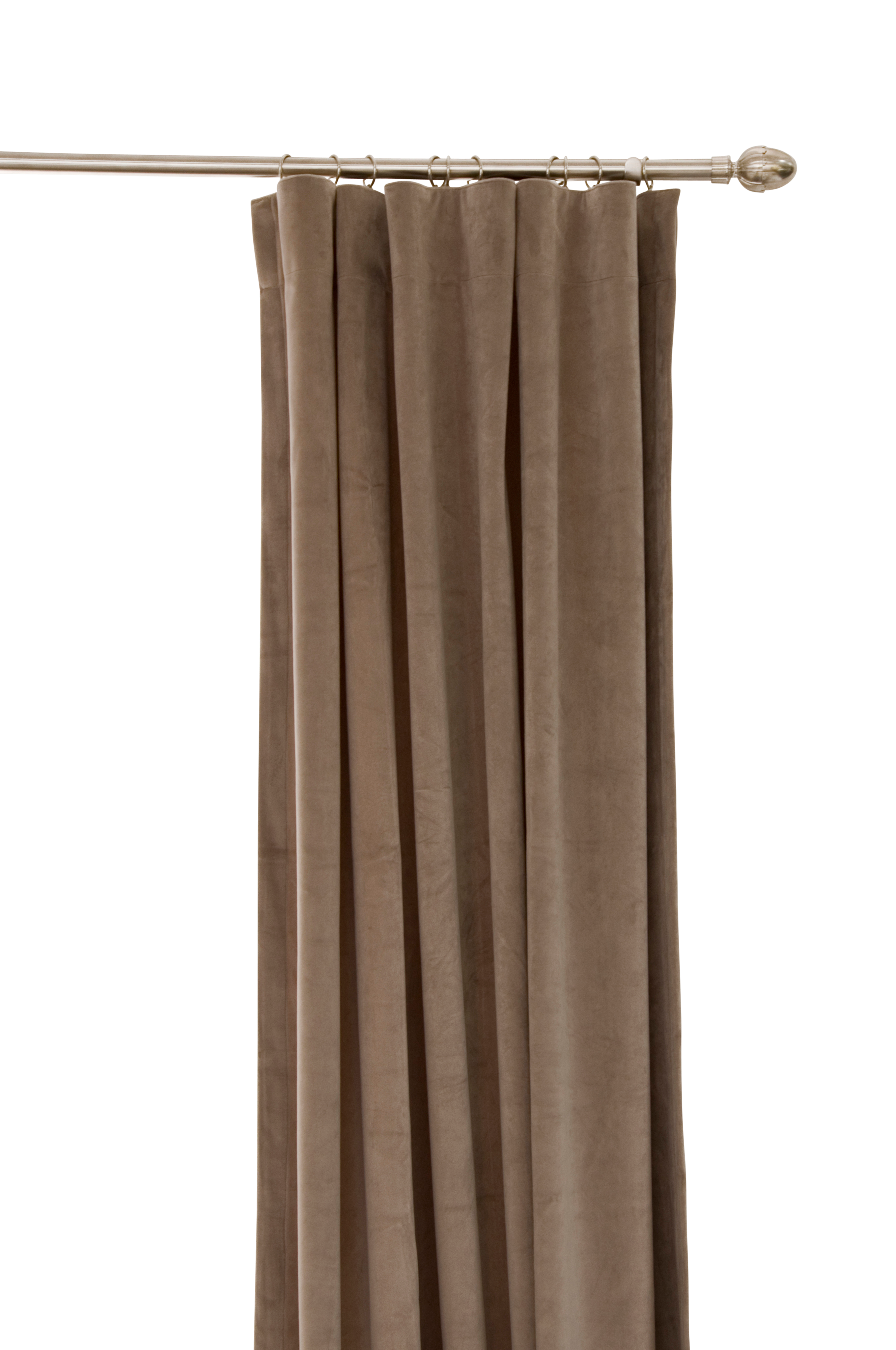 Klassisk gardinlängd i sammet. Bredd 134 cm. 250 cm lång. Gardinen har komboband vilket innebär 4 olika uppsättningsmöjligheter med ett band (veck-, pennveck-, wave- och hällsgardin).