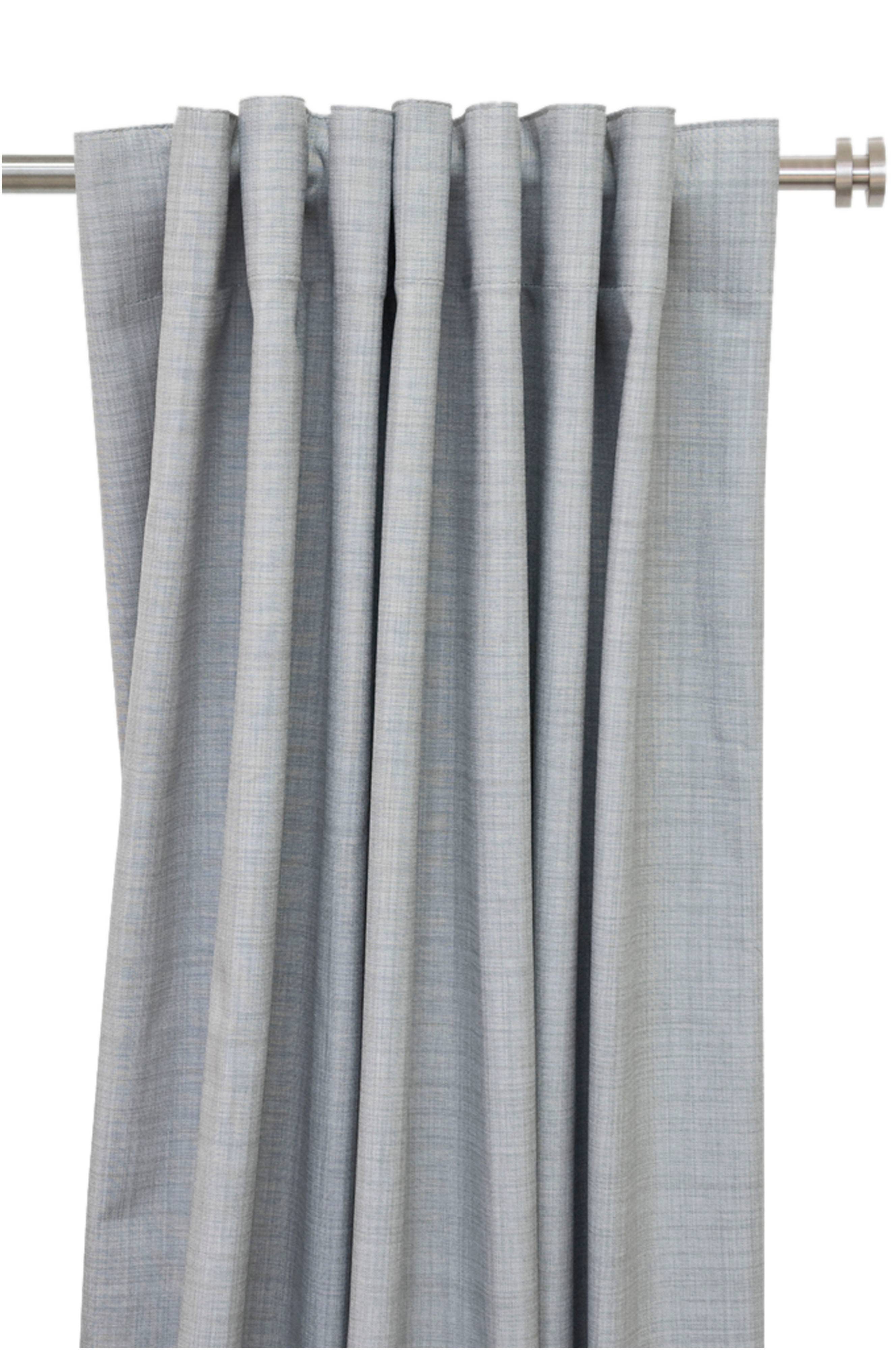 Mörkläggningsgardin med fin struktur som passar perfekt i sovrum eller i tv-rummet, där du vill ha helt mörkt. Av 100% polyester. Med comboband med vilken du kan sätta upp gardinen på 4 olika sätt: waveupphängning, veckad gardin med fingerkrokar, rynkbandsgardin med rynkbandskrok samt direkt på stången med färdiga hällor. Ofållad med overlock nertill. Bredd 132 cm. Säljs i 1-pack.