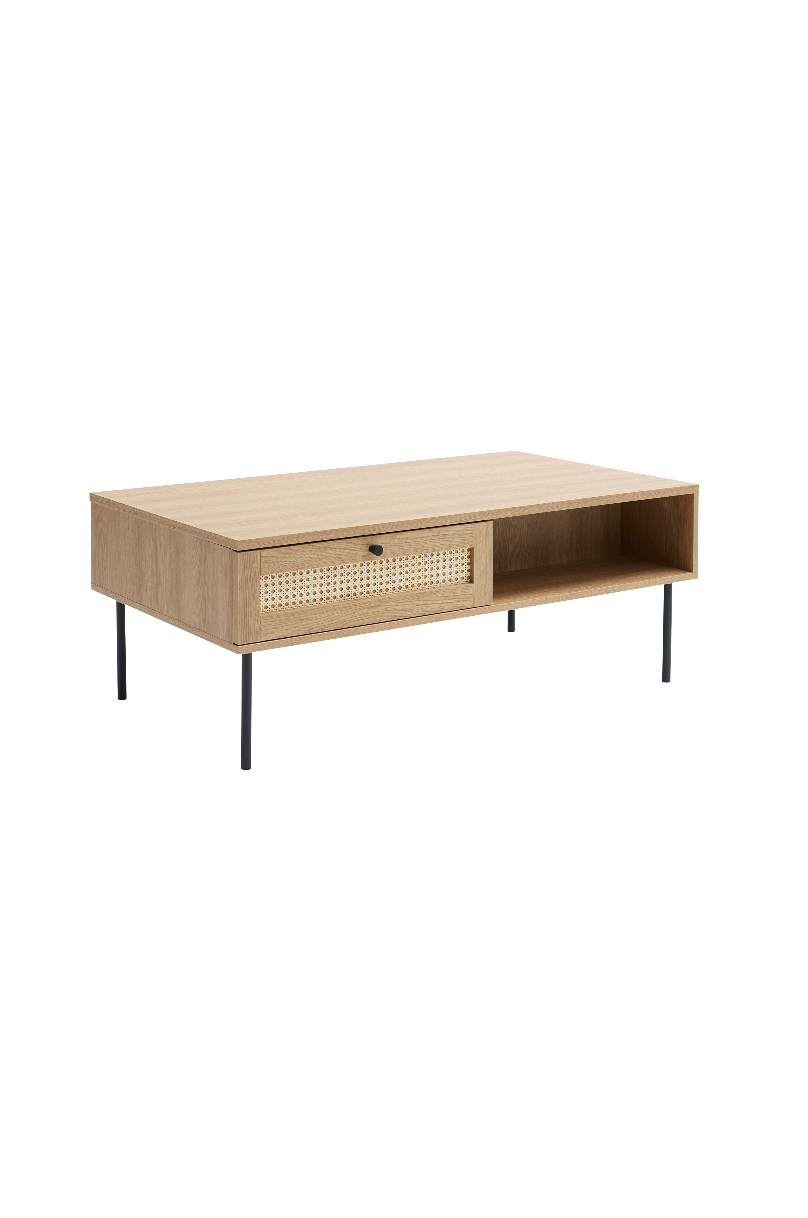 Kollektionen Brooklyn består av attraktiva, mångsidiga möbler i modern stil med retrokänsla och många detaljer som dörr och lådinsatser av svart polyrotting, i kombination med handtag och ben av svart metall samt en stilfull, svart ekfinish med struktur.