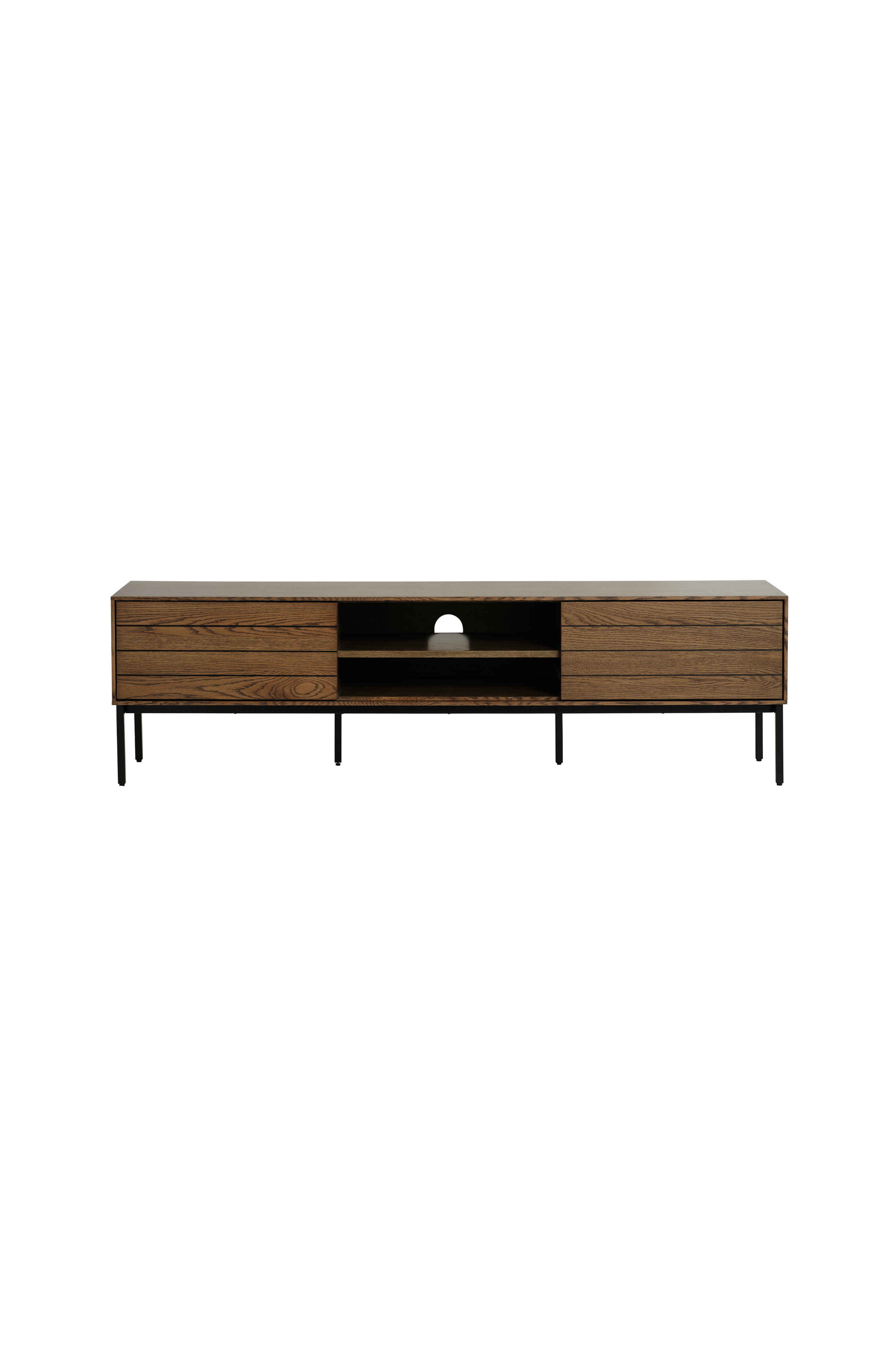 Ek i en varm, rökig ton som leker med snidade, horisontella, raka linjer och industriella inslag av svart metall ger Modica en lätt känsla, i en design som förstärks av lådorna och dörrarna med enkelt tryck-och-öppna-system.