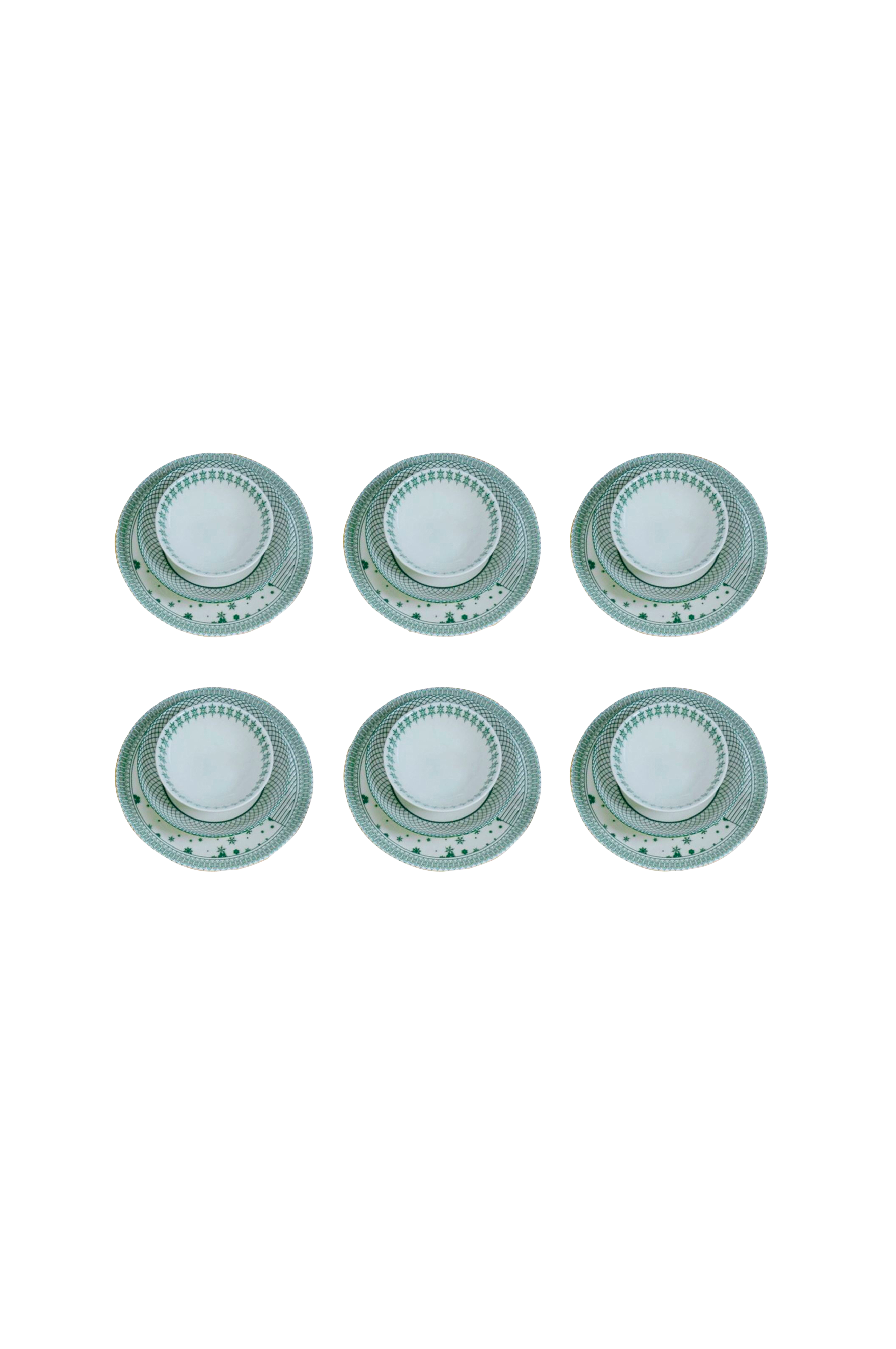 100% porslinserveringstallrik: 25 x 25 x 3 cm (6 delar)tallrik: 19 x 19 x 4 cm (6 st)skål: 14 x 14 x 5 cm (6 st)