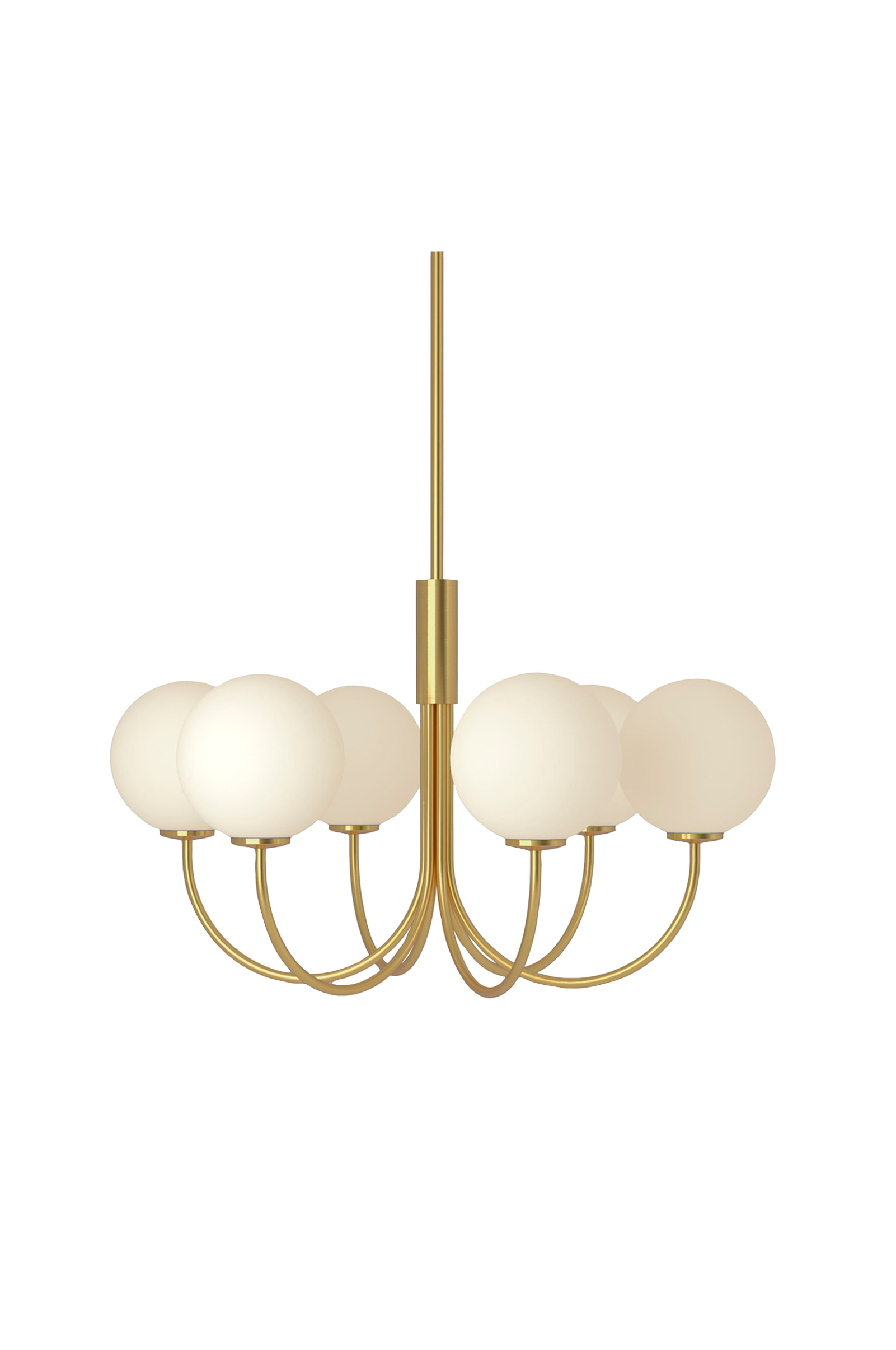 Där form möter flöde. Ballon kombinerar mjuka, sfäriska former med rena, arkitektoniska linjer - en tidlös kontrast som definierar modern dansk design. Ballon ger ett varmt sken med en självsäker närvaro i alla utrymmen. De svävande globerna skapar ett mjukt, diffust ljus, medan den grafiska ramen ger balans och karaktär. Dimbar. Enkel att installera med takkrok och takkopp samt en 2,5 meter lång sladd för maximal flexibilitet. Ljuskällor ingår ej. Sockel 6xg9. 5 watt. Höjd 66,5 cm och diameter 60 cm. Ip20. Klass ii.