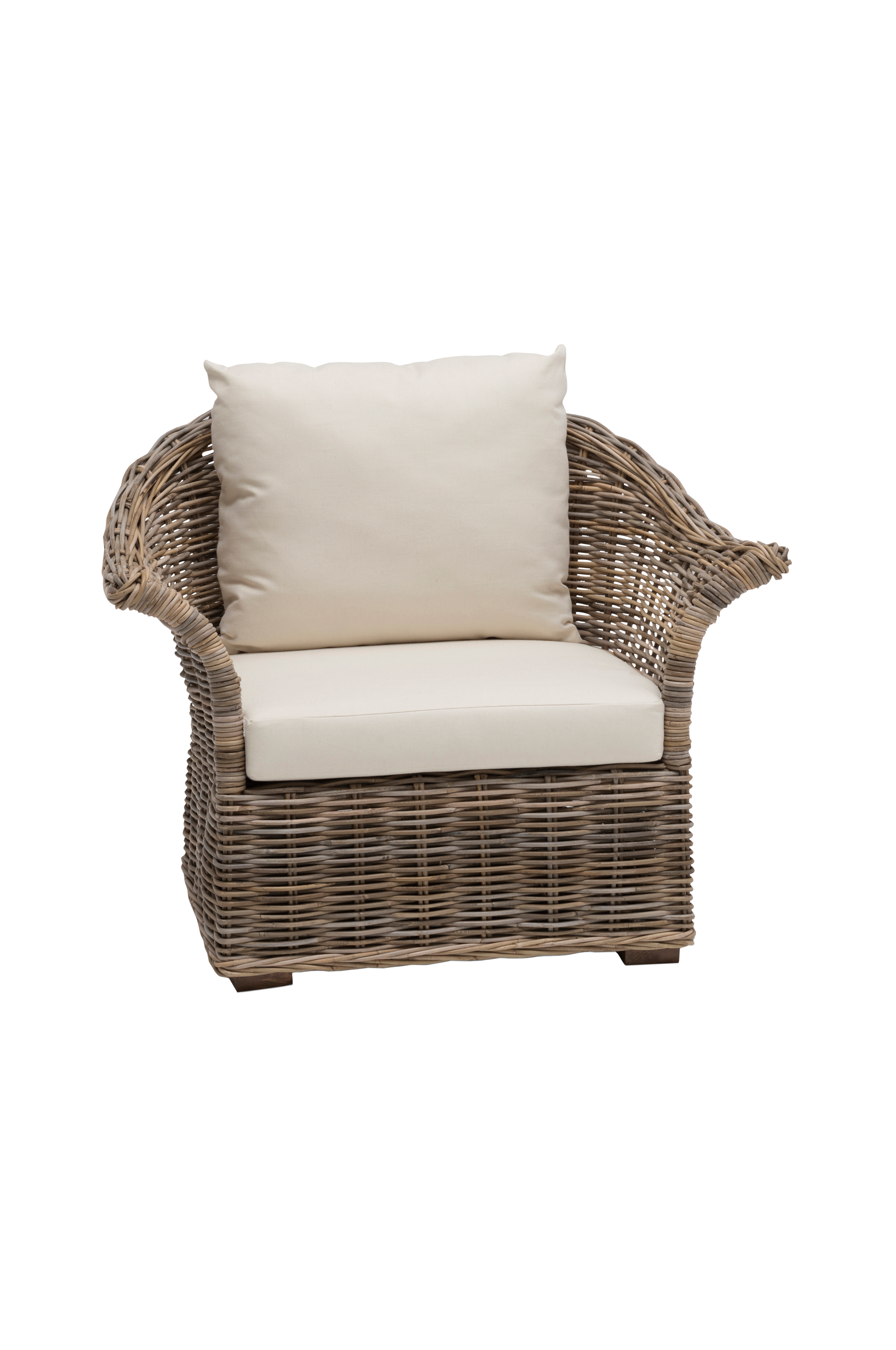 Fåtölj tillverkad av äkta rotting som passar utmärkt i inomhusmiljöer. Med sina runda former skapar Edsklinta en vacker och praktfull känsla. Vita dynor ingår. Bredd 98, höjd 72, djup 80 cm. Sitt djup 48, sitthöjd 39 cm. Monterad.