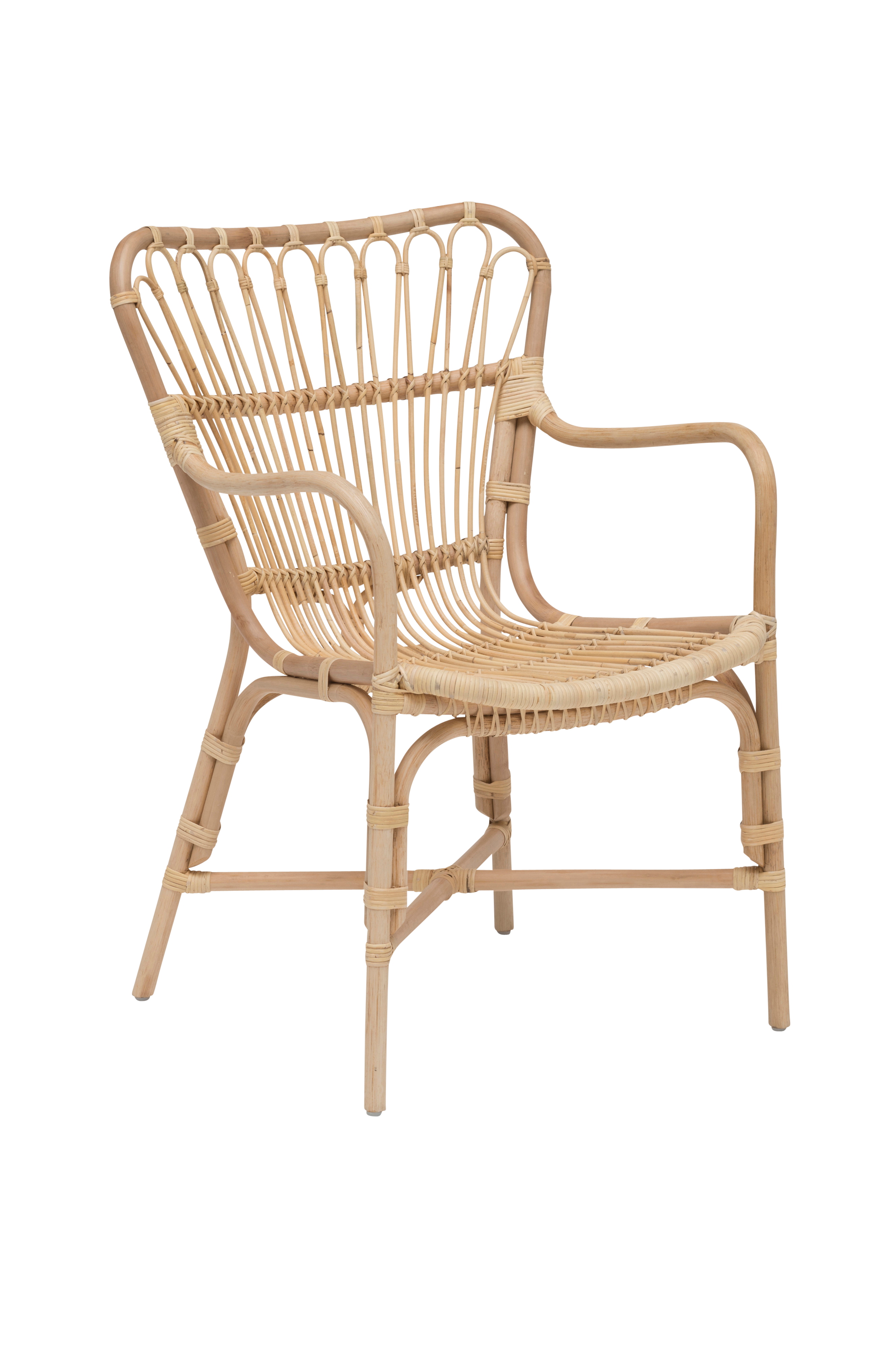 Att tillverka en möbel i naturrotting är ett rent hantverk. Det naturliga materialet ger varje enskild möbel en unik karaktär och ingen är den andra lik. Möbeln i naturrotting är skapad för inomhusmiljöer. Trivsam fåtölj som passar både som mat- och loungefåtölj. Bredd 55, höjd 84, djup 61 cm. Sittdjup 42, sitthöjd 44 cm.