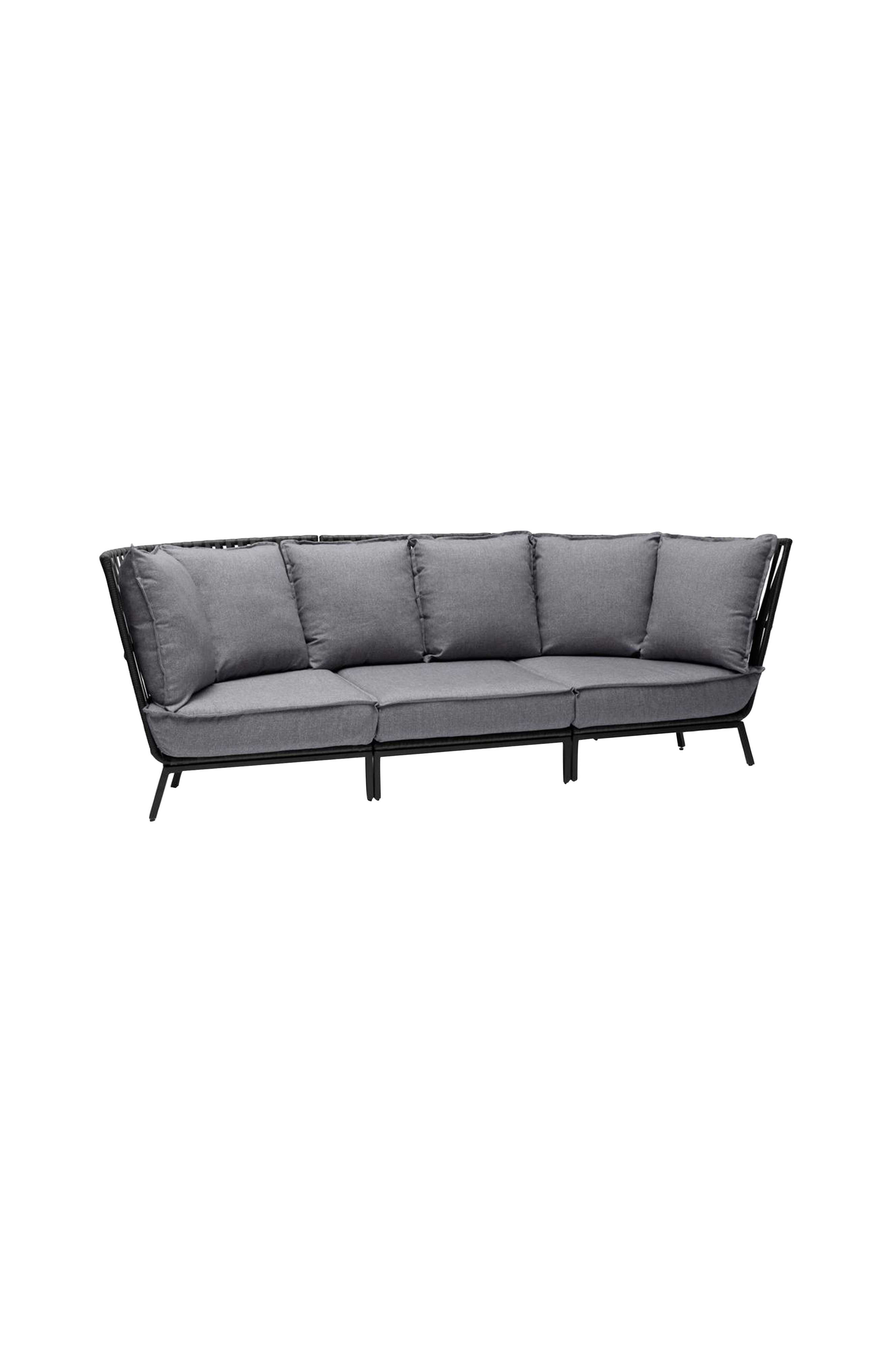Skapa en modern och elegant miljö med jet set. Den 3-sitsiga loungesoffan är tillverkad av svart aluminium och svart flätad korg. Dynor i gråmelerad olefin ingår också. Jet set är designad av karl malmvall.