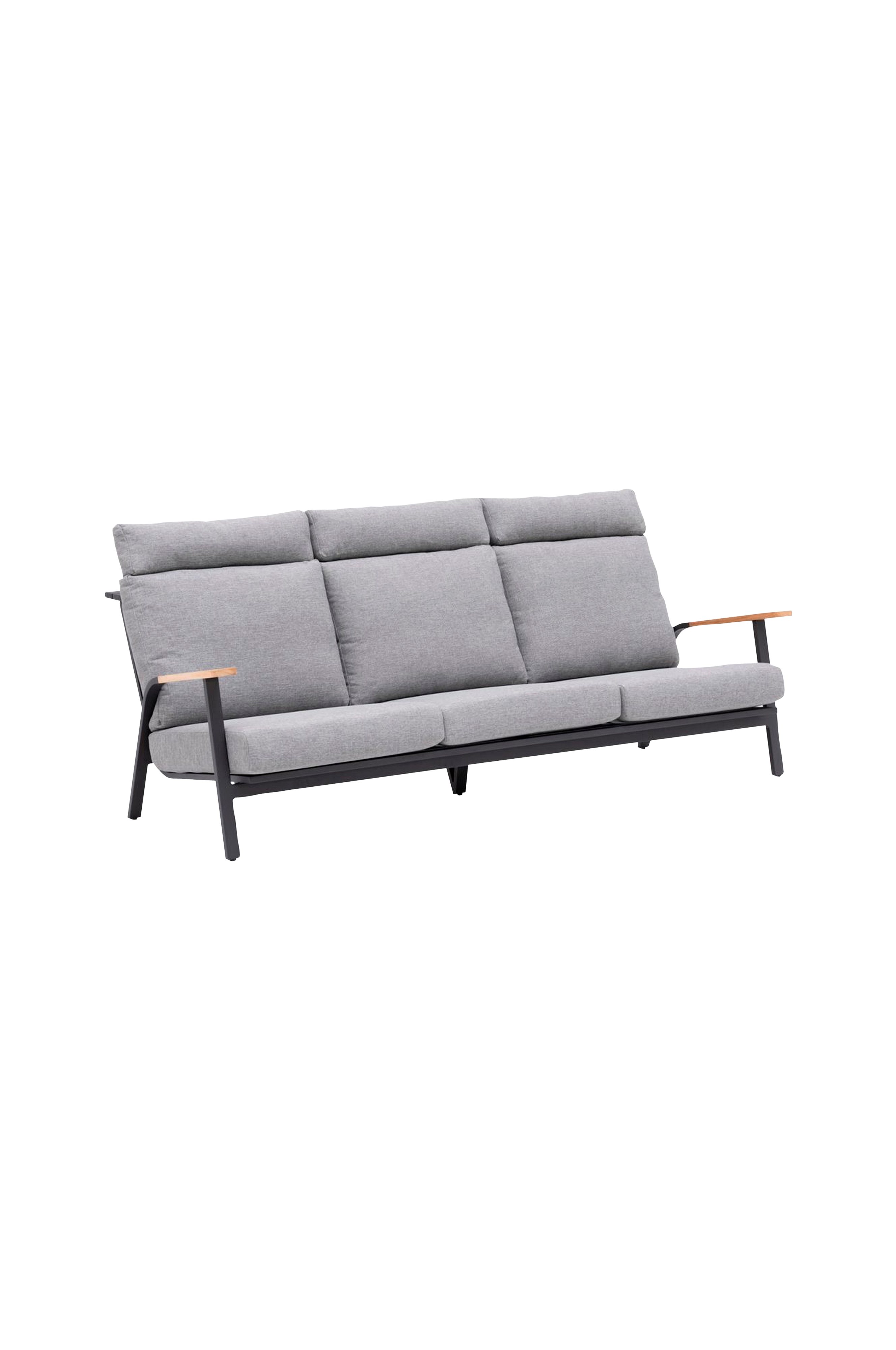 En funktionell och vackert designad 3-sitsig soffa. Tillverkad av aluminium med trädetaljer i fsc®-certifierad teak. Färg: charcoal. Grå dyna och nackkudde i olefin med quickdry-skum i sitsen. Quickdry är ett unikt skum med snabbtorkande förmåga och hög komfort. Quickdry andas, har en öppen cellstruktur och är väderbeständigt. Därför fungerar det optimalt för utemöbler.