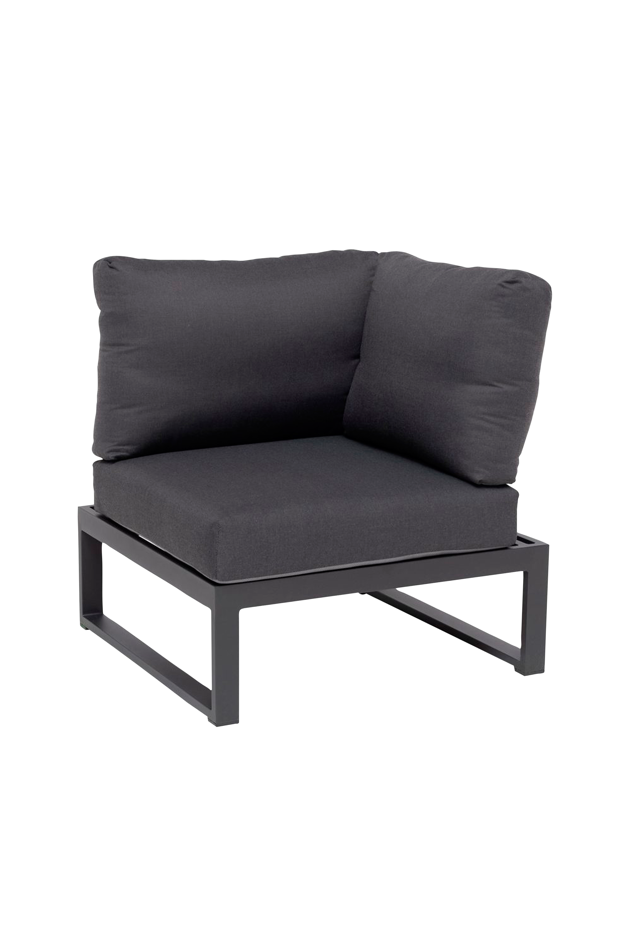 En bekväm och modulär hörnsektion som kan kombineras med olika element i Oxelundaserien. Tillverkad av aluminium. Färg: träkol. Ljusgrå dyna i olefin med quickdry-skum i sitsen. Quickdry är ett unikt skum med snabbtorkande förmåga och hög komfort. Quickdry andas, har en öppen cellstruktur och är väderbeständigt. Därför fungerar det optimalt för utemöbler.