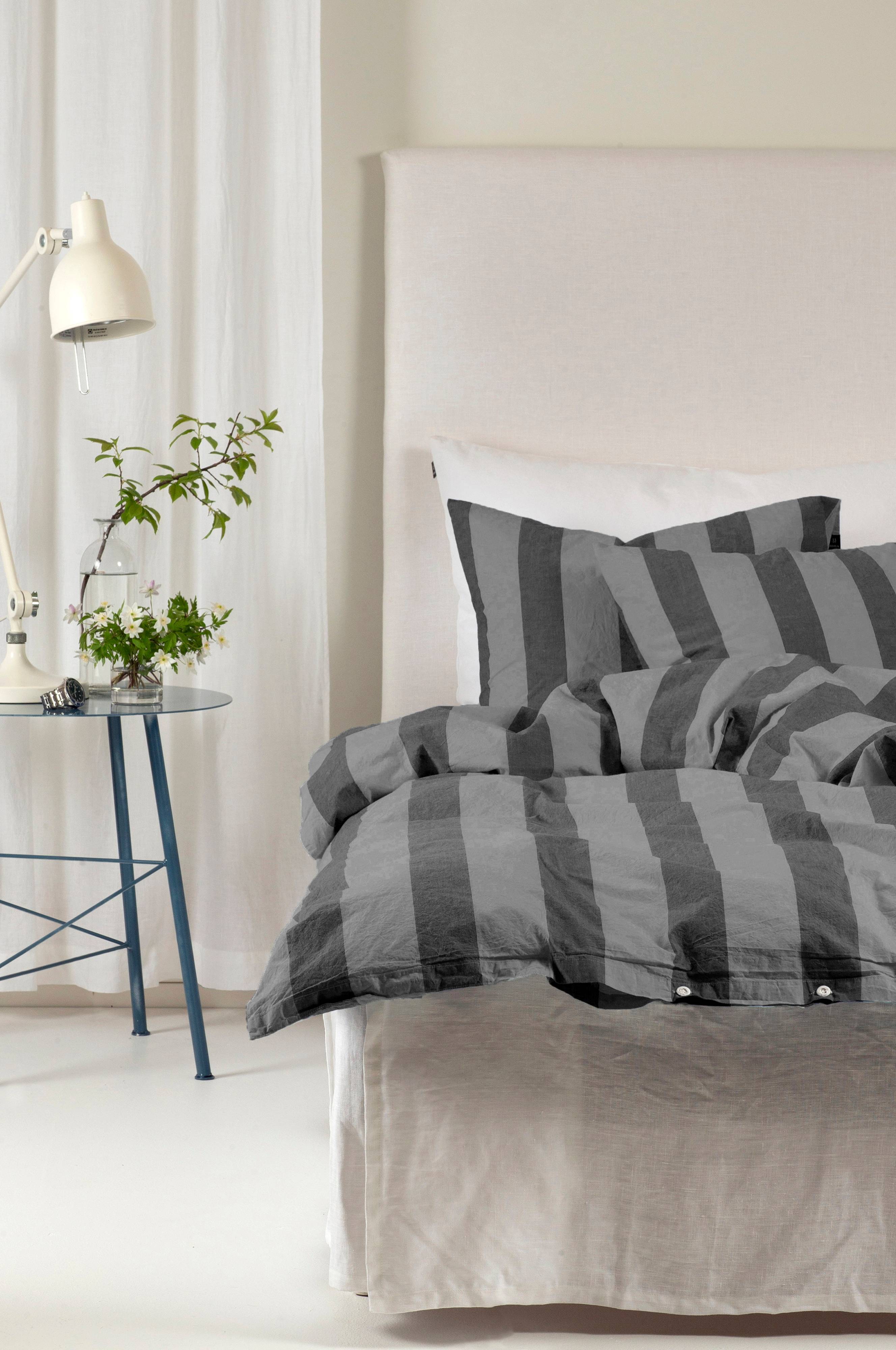 Daydreamer är Himlas blockrandiga sänglinneserie i krispig och sval percale. Tillverkad av kammad bomull med en trådtäthet på 200 Tc och tvättad efter sömnad. Öppning med knappar i nederkant. Produkten är certifierad med Oeko-Tex. Örngott säljs separat. Maskintvätt 60°C, Krympning 1-3%.