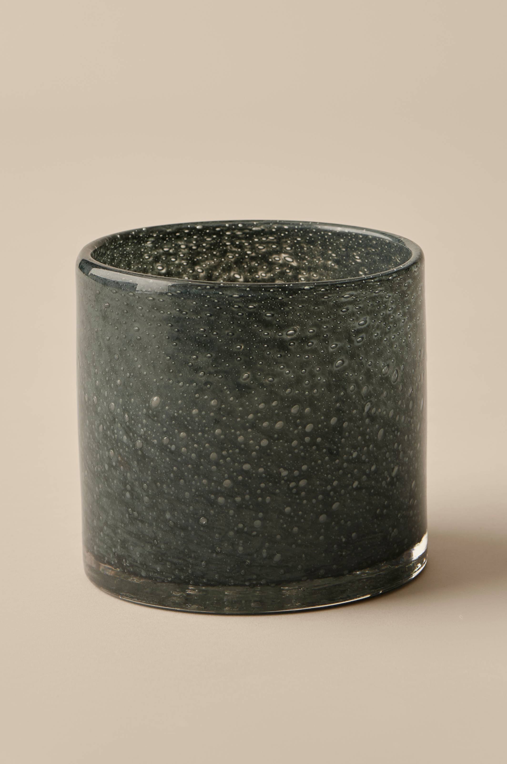 Ljuslykta eller liten kruka i glas. Färgen har vackra skiftningar och glaset har bubblor i sig som skapar fint uttryck och ett stämningsfullt ljussken. Tekniken gör att ojämnheter och färgskillnader förekommer och varje ljuslykta blir unik. Höjd ca 15 cm, Ø ca 15 cm. Rengörs för hand.