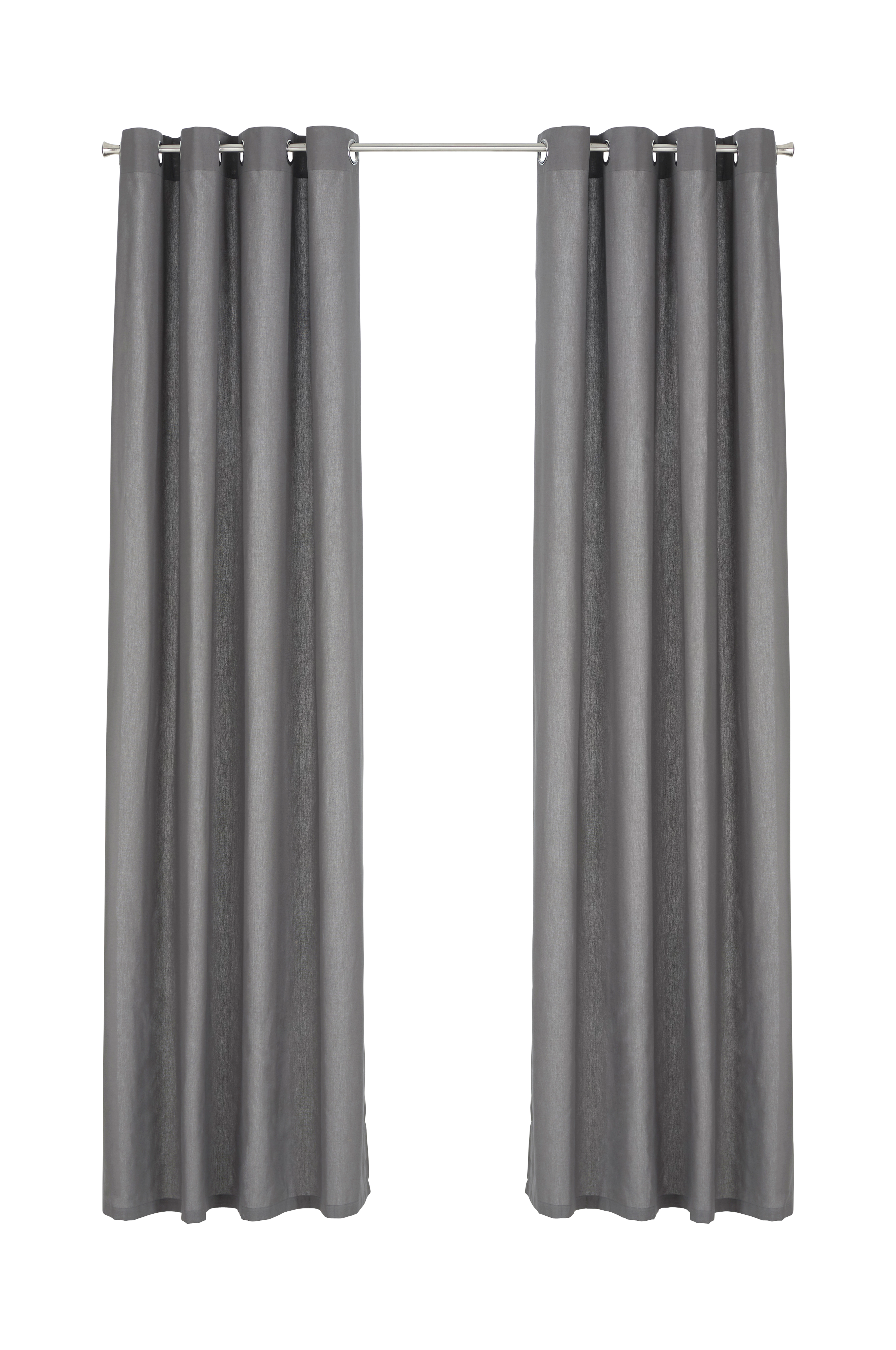 Två öljettlängder av ett lite kraftigare tyg i halvpanama av bomull. Metallöljetter upptill. Bredd 145 cm. Två längder, 220 och 250 cm.