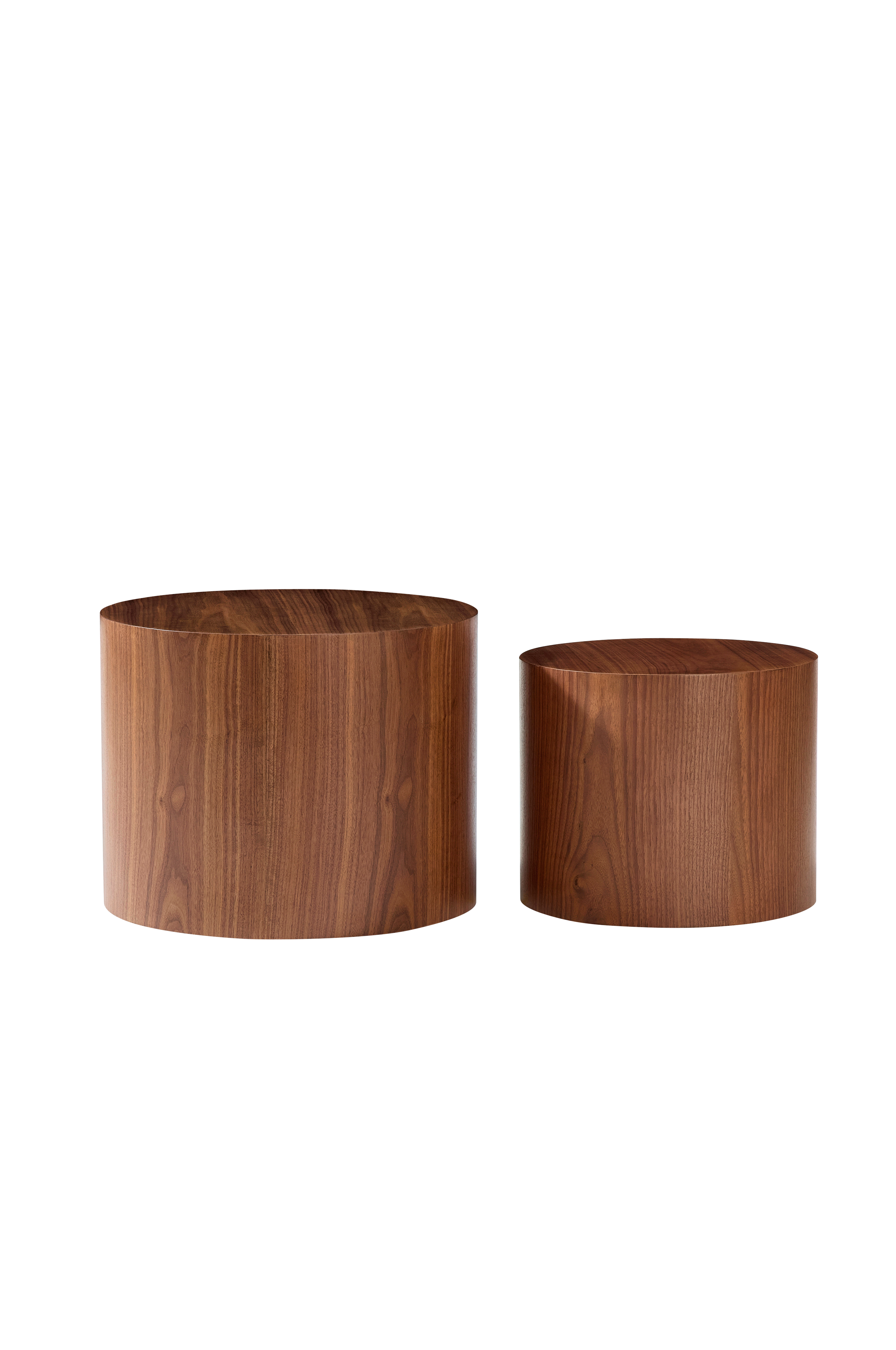 Den stapelbara designen gör dessa bord lätta att förvara och mycket flexibla, perfekt för små utrymmen eller när extra yta behövs för gäster. Den släta ytan i träfanér ger en förfinad känsla samtidigt som den är praktisk och lätt att underhålla.