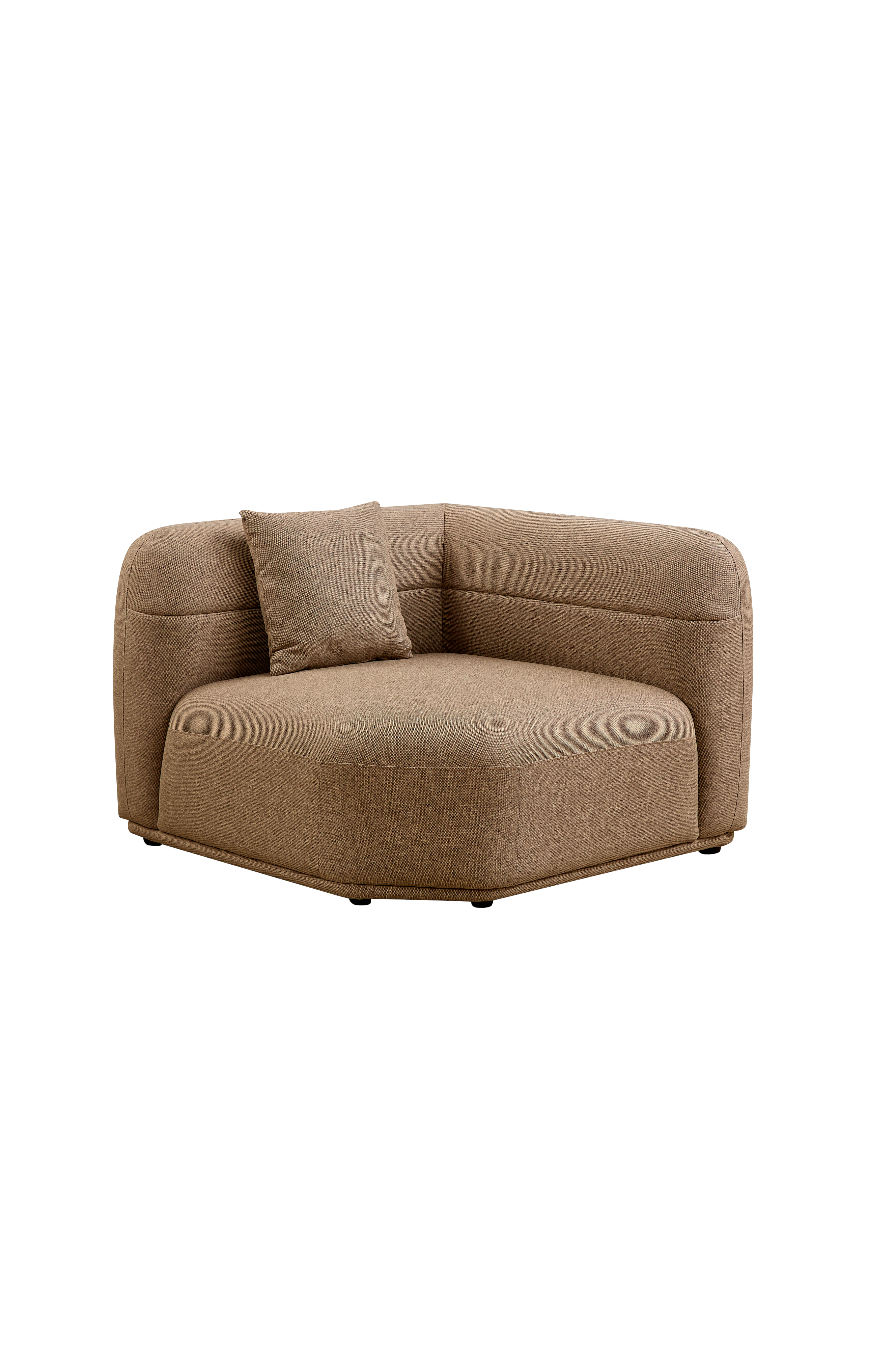 Soffan har en modulär design med mjukt rundade kuddar för en mjuk och modern look. De flexibla sektionerna gör att du kan skapa olika sittarrangemang och anpassa dem till ditt utrymme och dina behov.