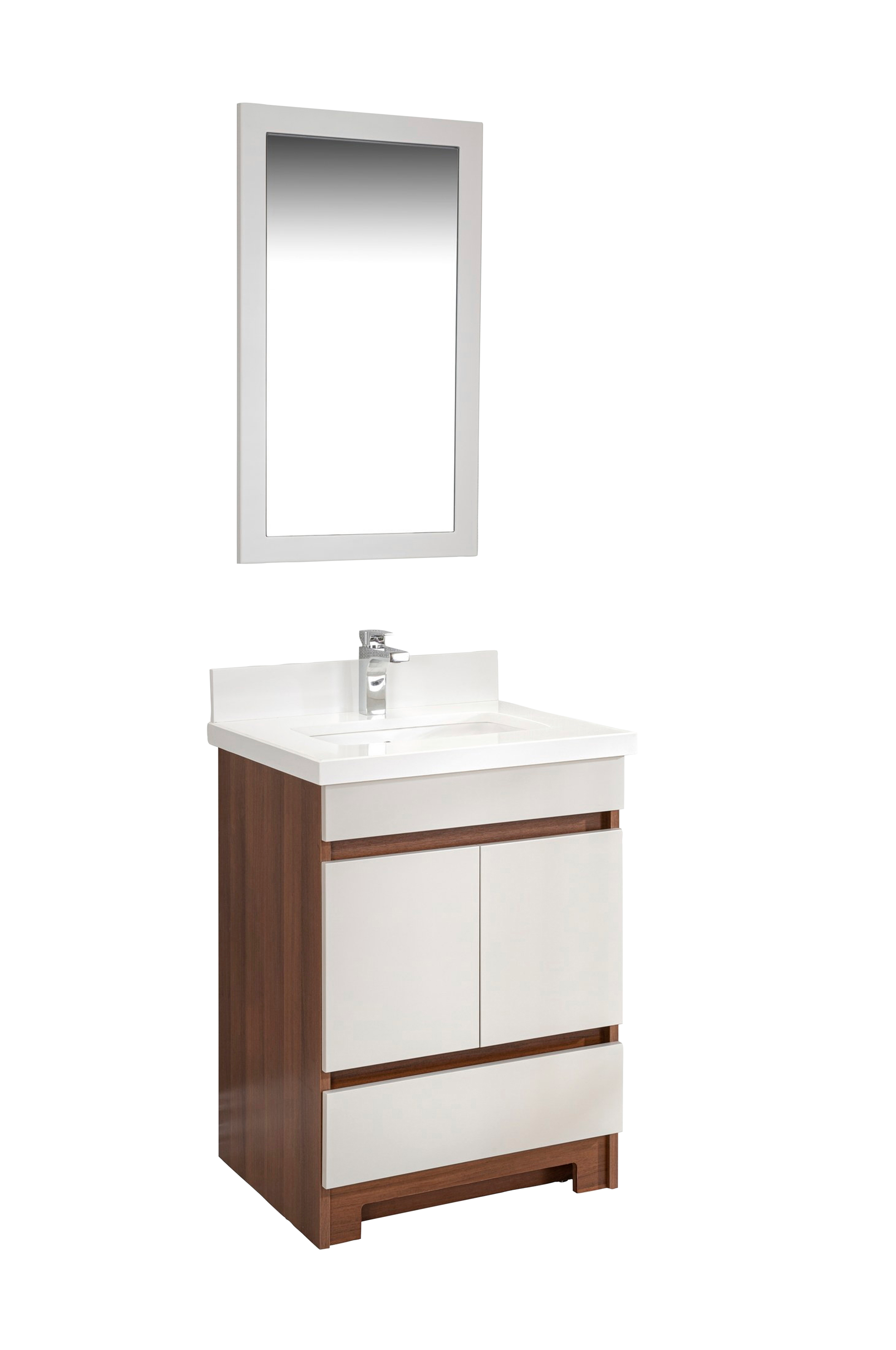 100% lackerad MDF (massivt trä) (tjocklek: 18 mm) bänkskiva: 100% vit kvarts & monterat handfat av porslin