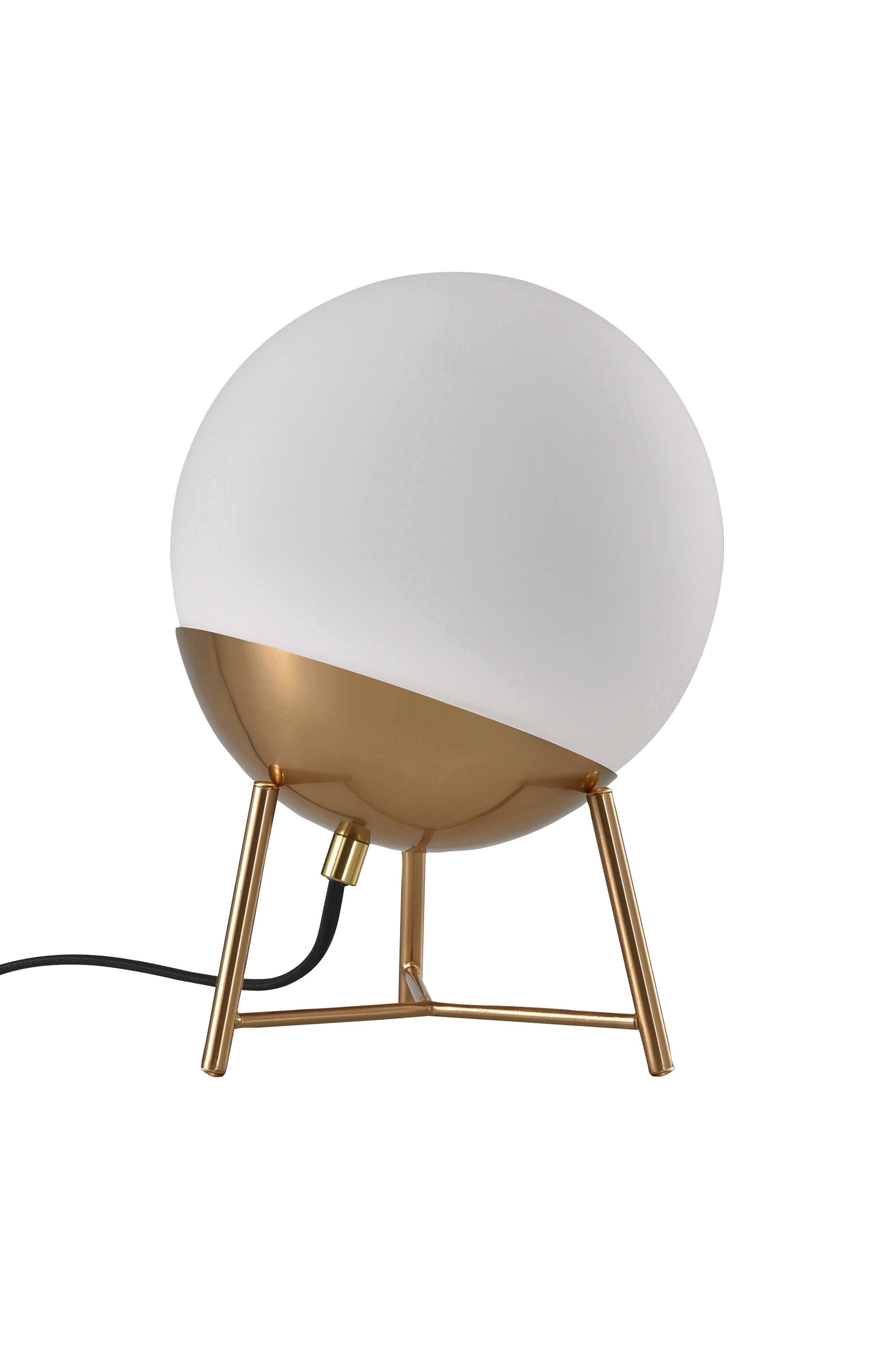 Bordslampa av glas, sockel och ben i mässingfärg, kulformad, Ø20 cm