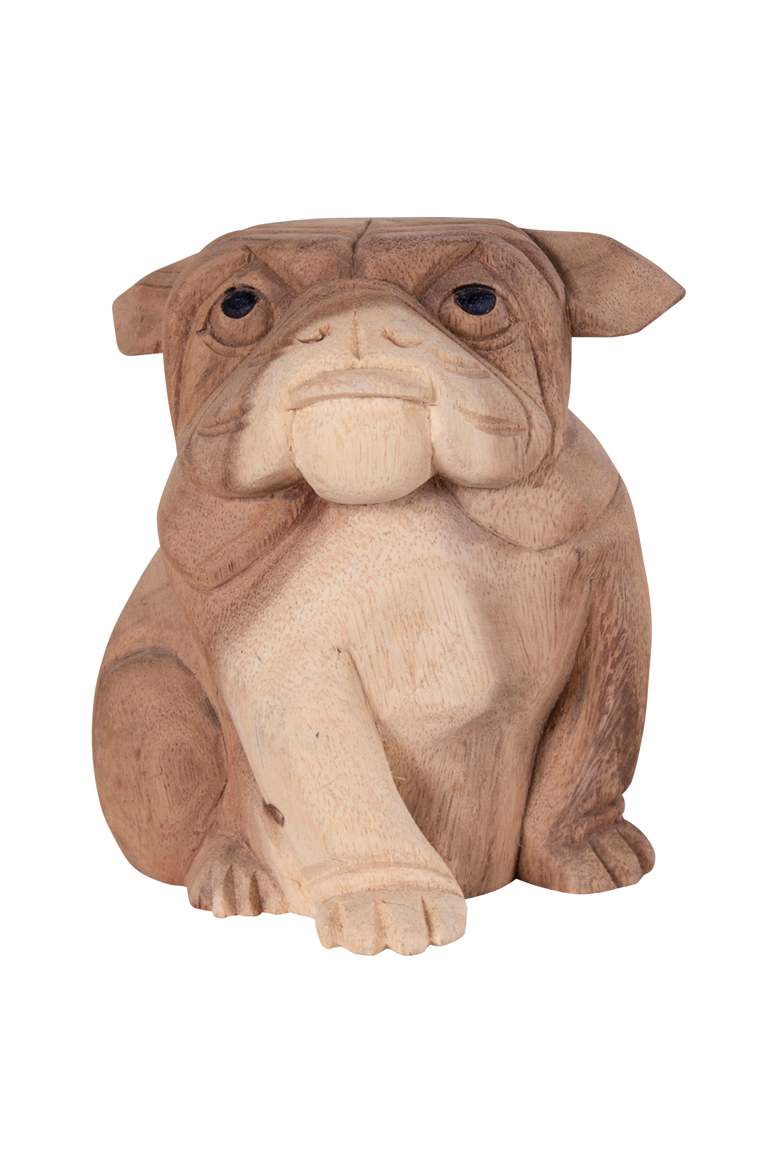 Bulldogg i albiziaträ. 8 x 10 x 10 cm