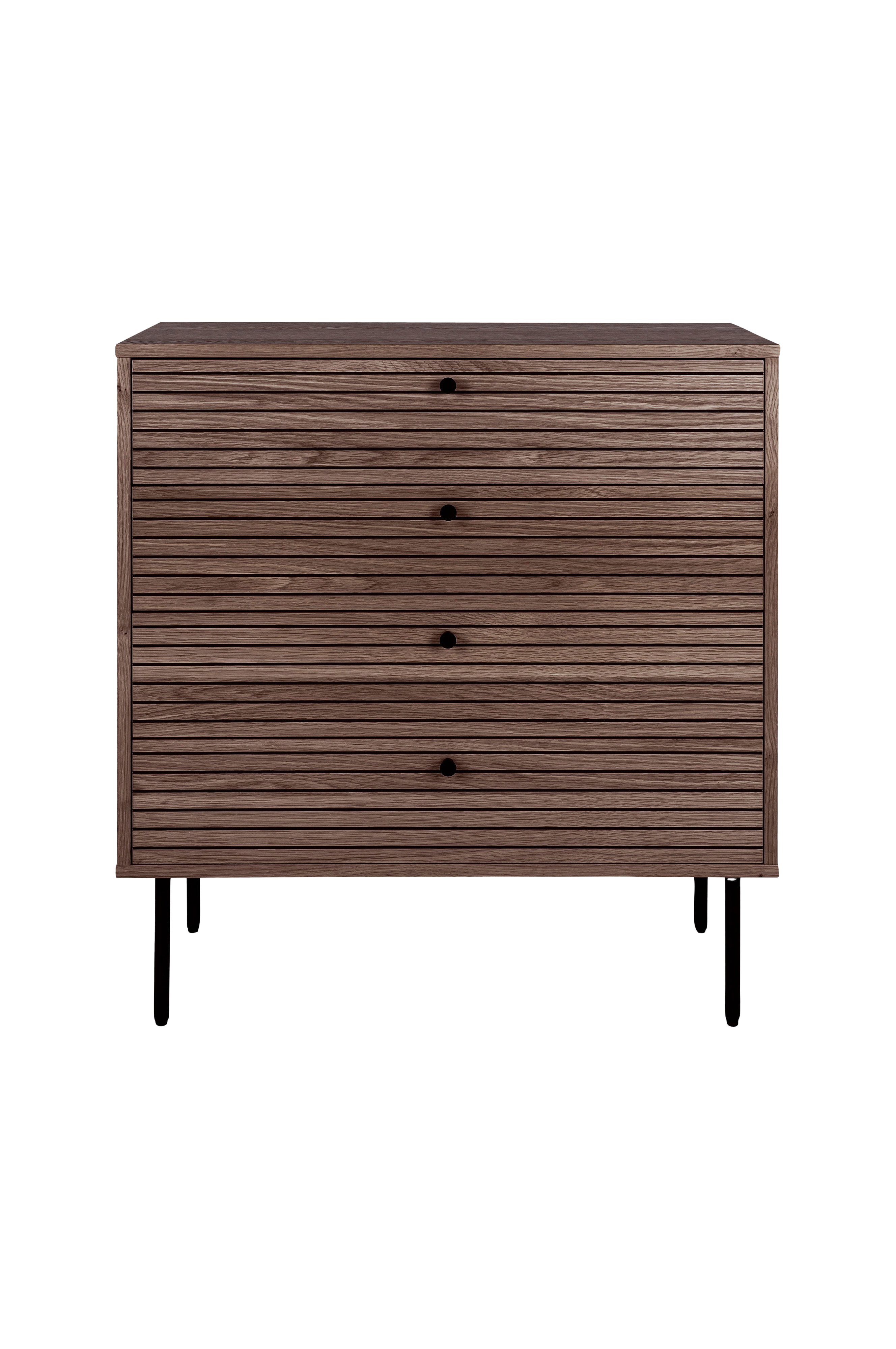 Byrå, 4 lådor, ekfanér, ben av metall 80x40x85 cm
