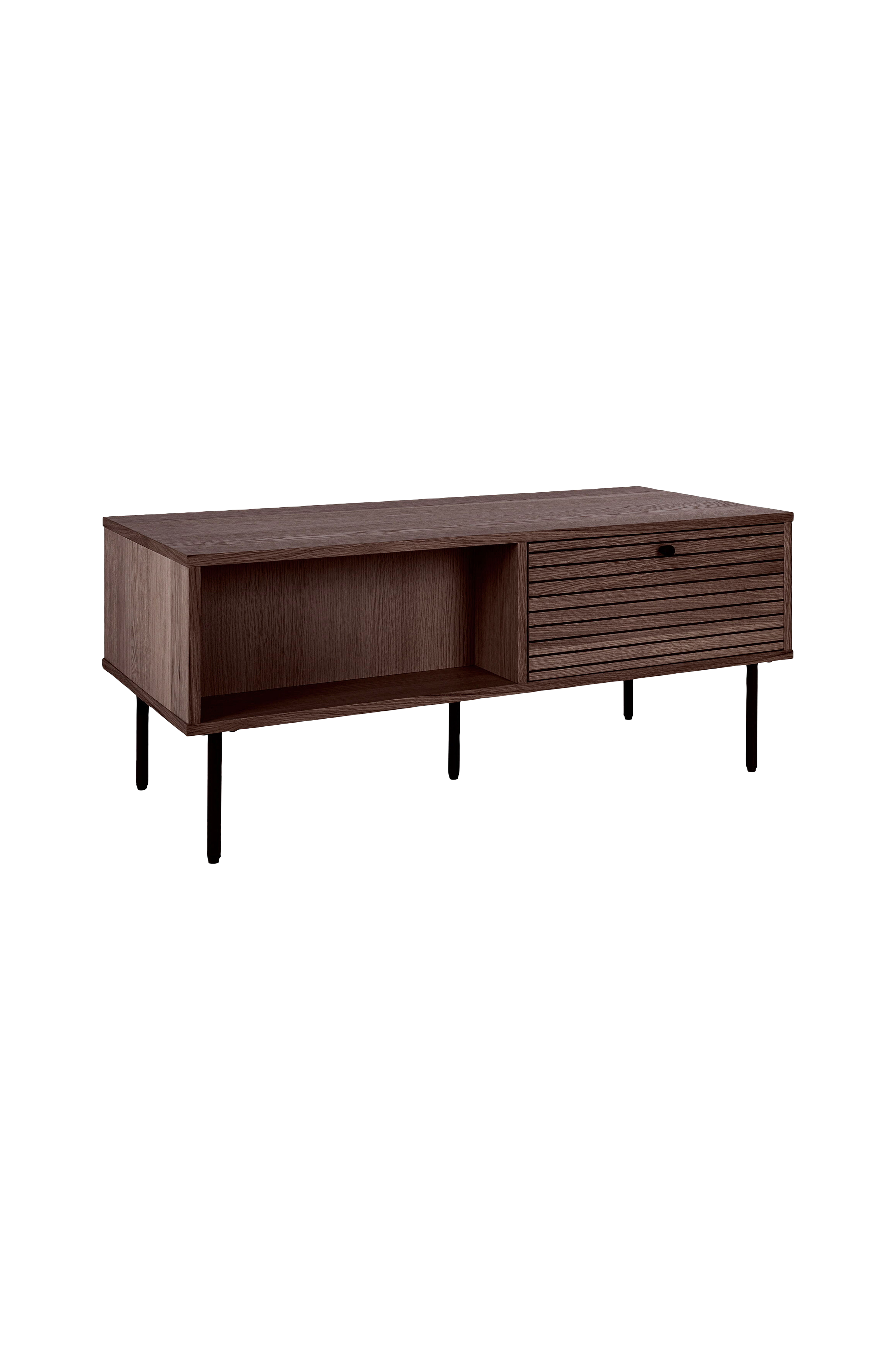 Soffbord, 2 lådor, ekfanér, metallben 50x100x45 cm