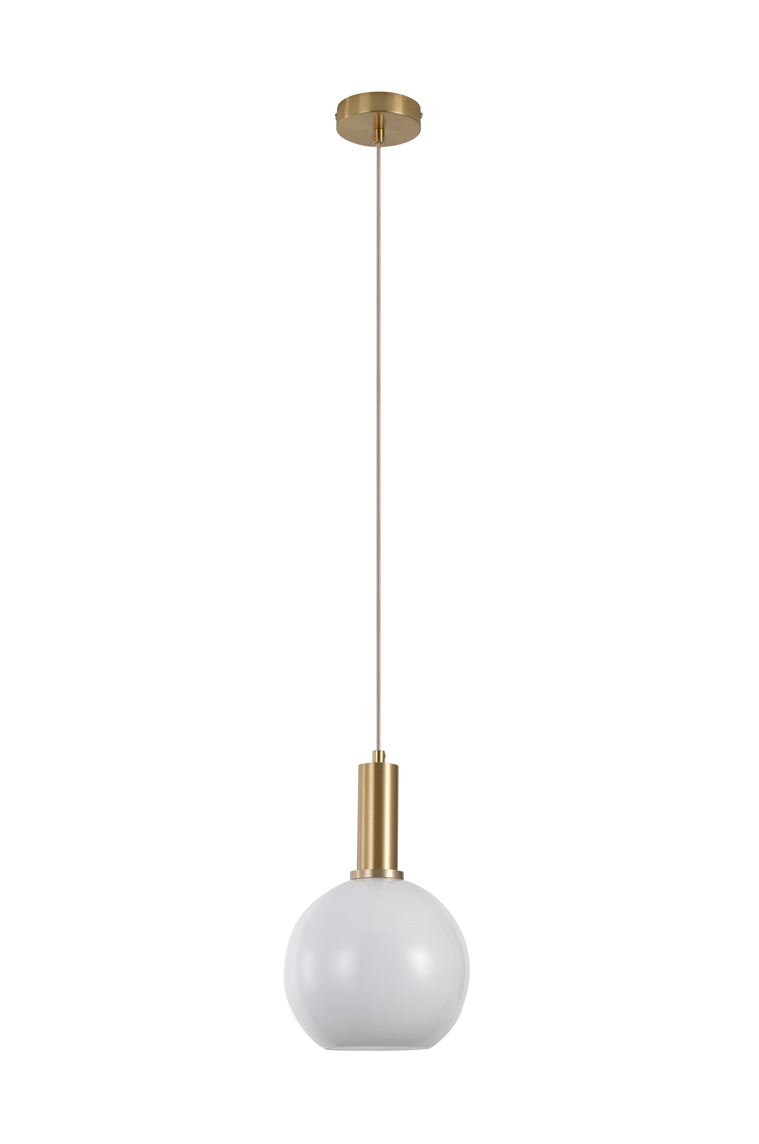 Taklampa av glas, mässingsfärgad sockel, kulformad, Ø20 cm, 150 cm textilsladd