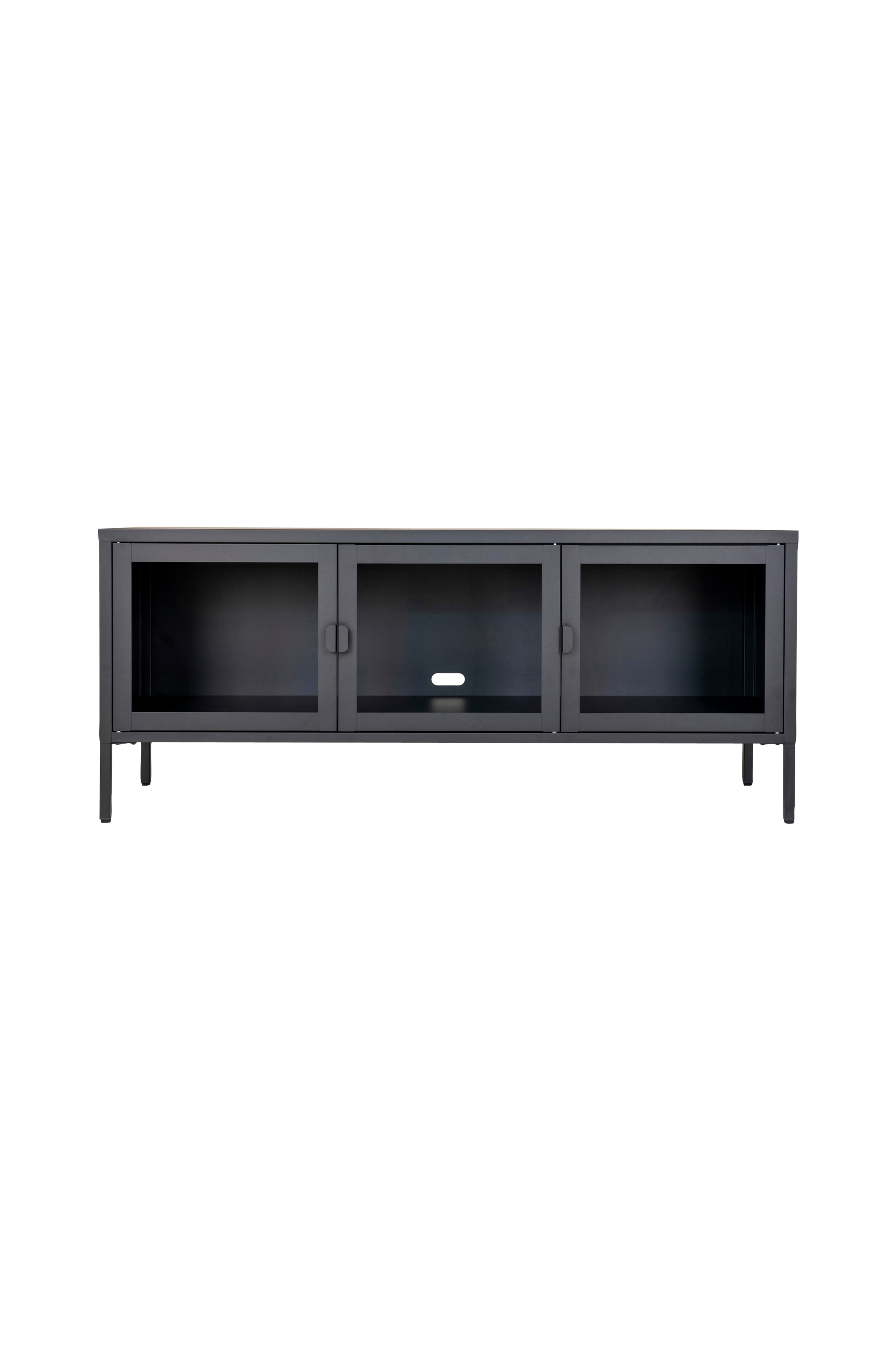 Tv-bänk i svart färg med glasdörrar. 40x130x55 cm