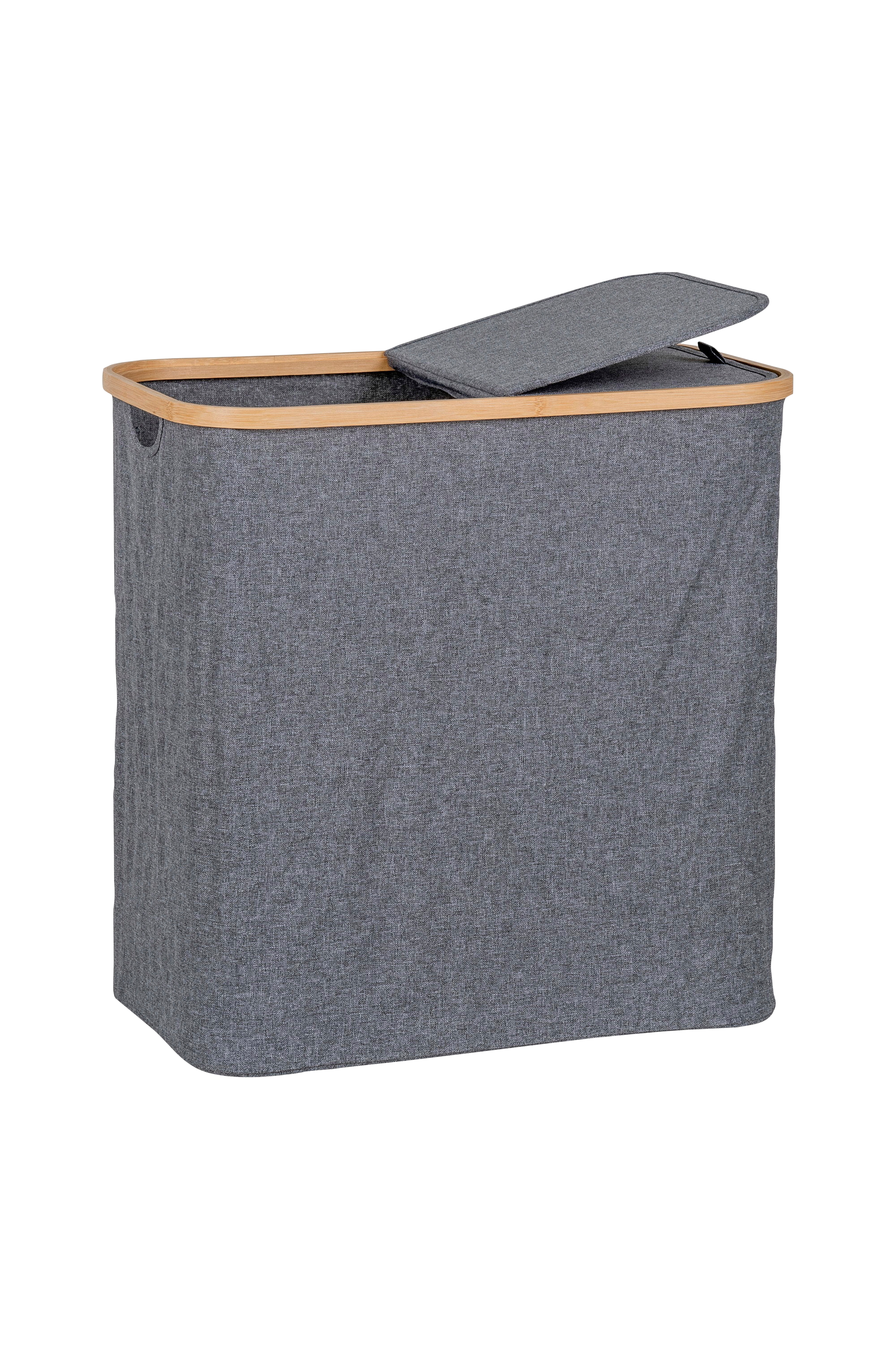 Tvättkorg av bambu/textil, mörkgrå, 54x33x54 cm