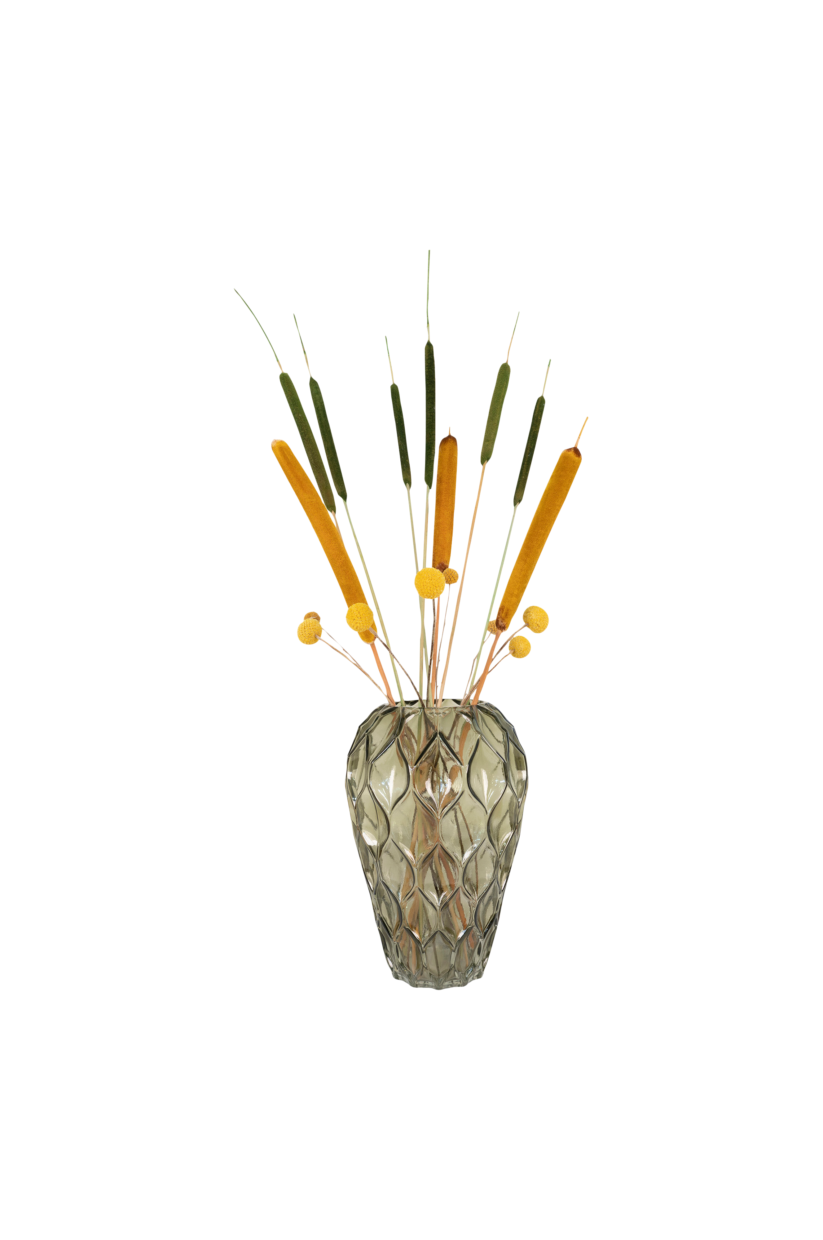 Vas av munblåst glas. Mått: Ø18 x H27 cm.