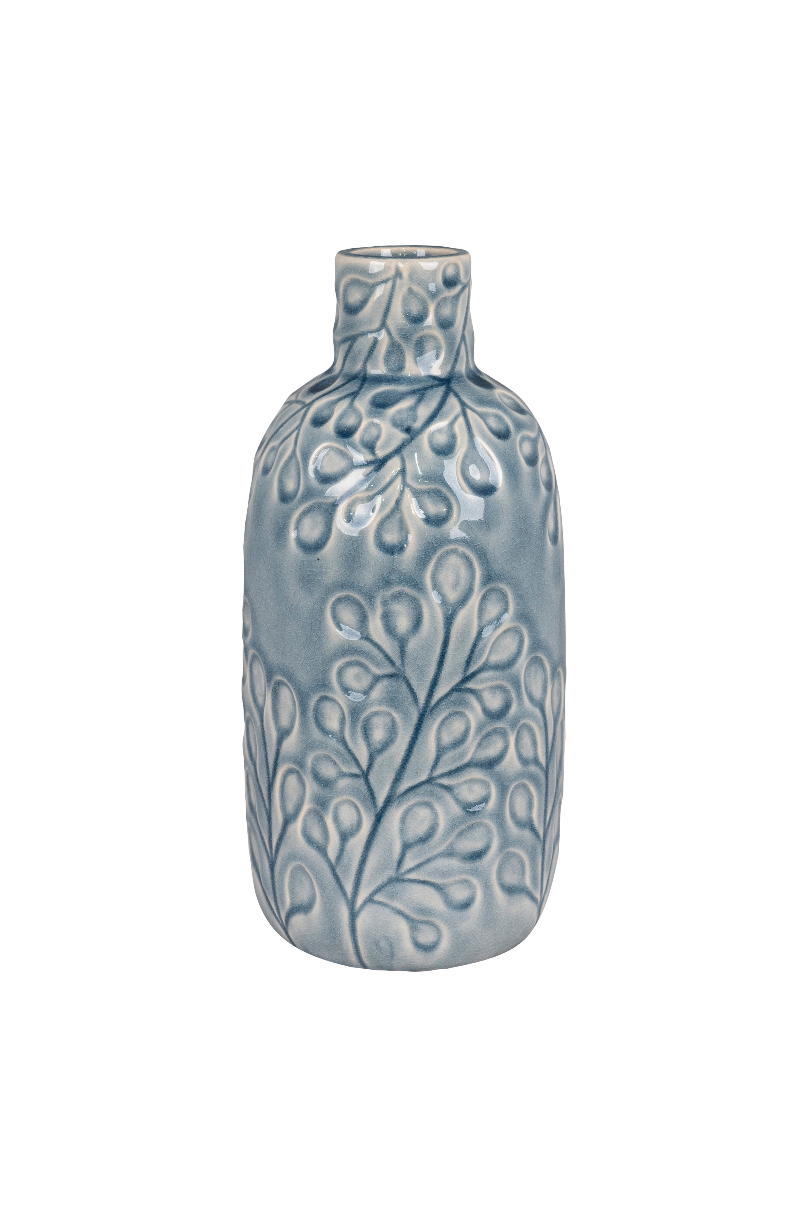 Vas av keramik, blå mönstrad, rund, Ø12x26 cm