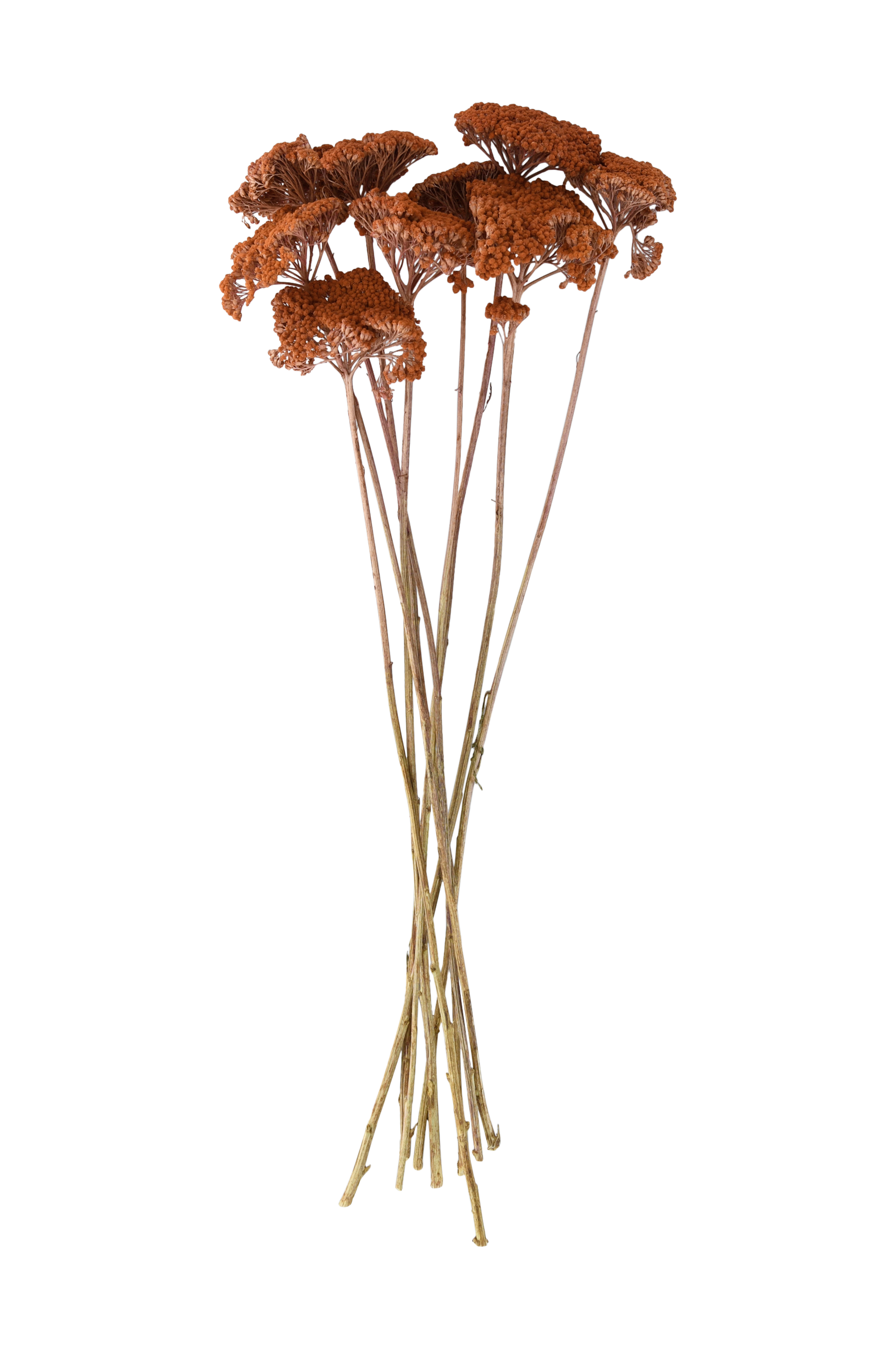Torkad achillea i en härlig höstfärg. Matchar den orange linoflaxen. 10 st /förpackning. Höjd ca 50 cm.