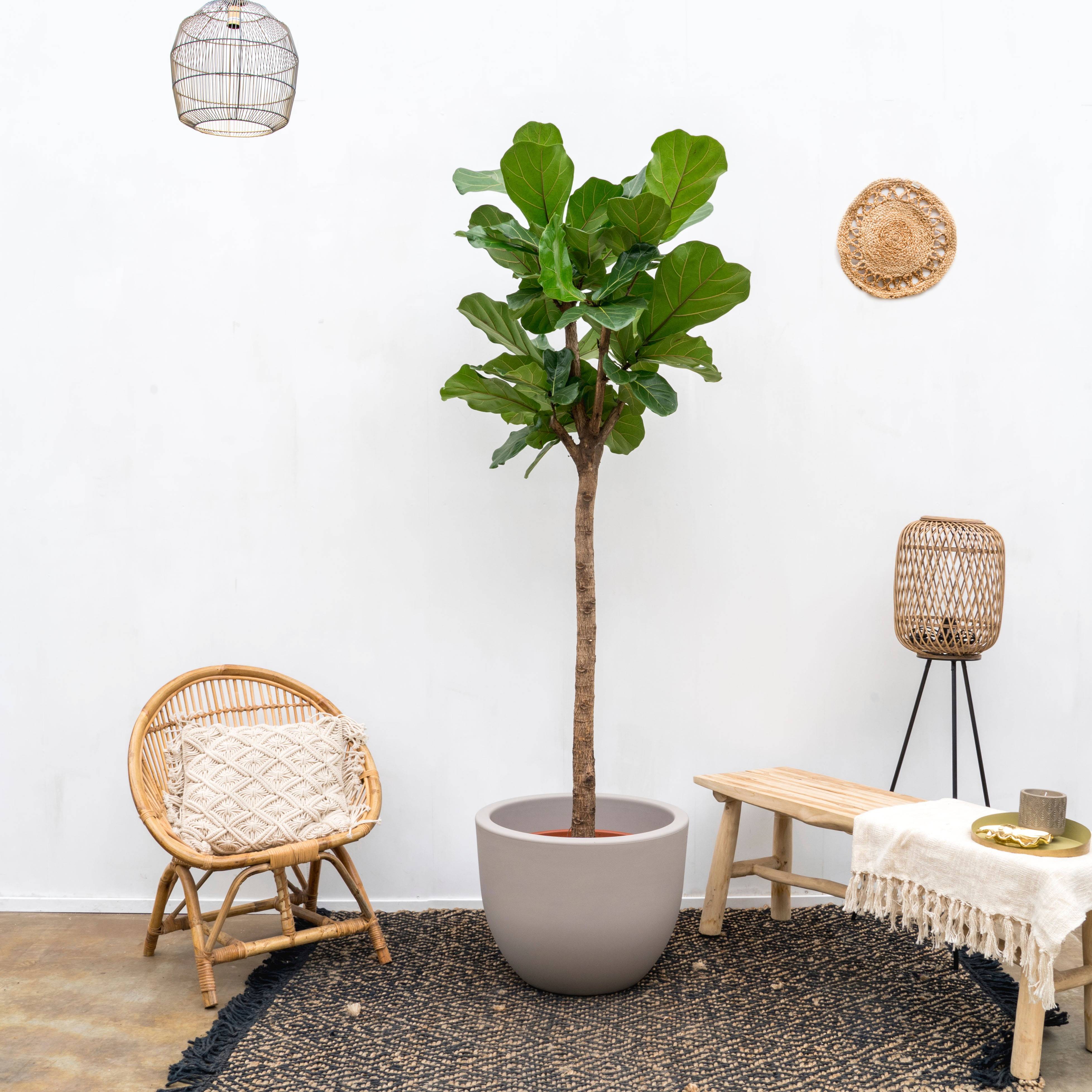Ficus lyrata-stammen är en superpopulär XL-växt, precis som ficus lyrata-busken! Ficus lyrata kallas också för tobaksplantan eftersom dess blad används för att göra tobak. Denna luftrenande krukväxt kan vara känslig för nya miljöer till en början och tappa lite blad innan den vänjer sig i sin nya miljö. Ficus lyrata på stam är en riktig solbadare, så den föredrar en ljus plats nära ett fönster och alltid fuktig jord. Bladen på ficus lyrata är giftiga för barn och husdjur vid förtäring. Höjd 160 cm. Krukdiameter 27 cm. Ytterkruka ingår ej. Doft: ingen.