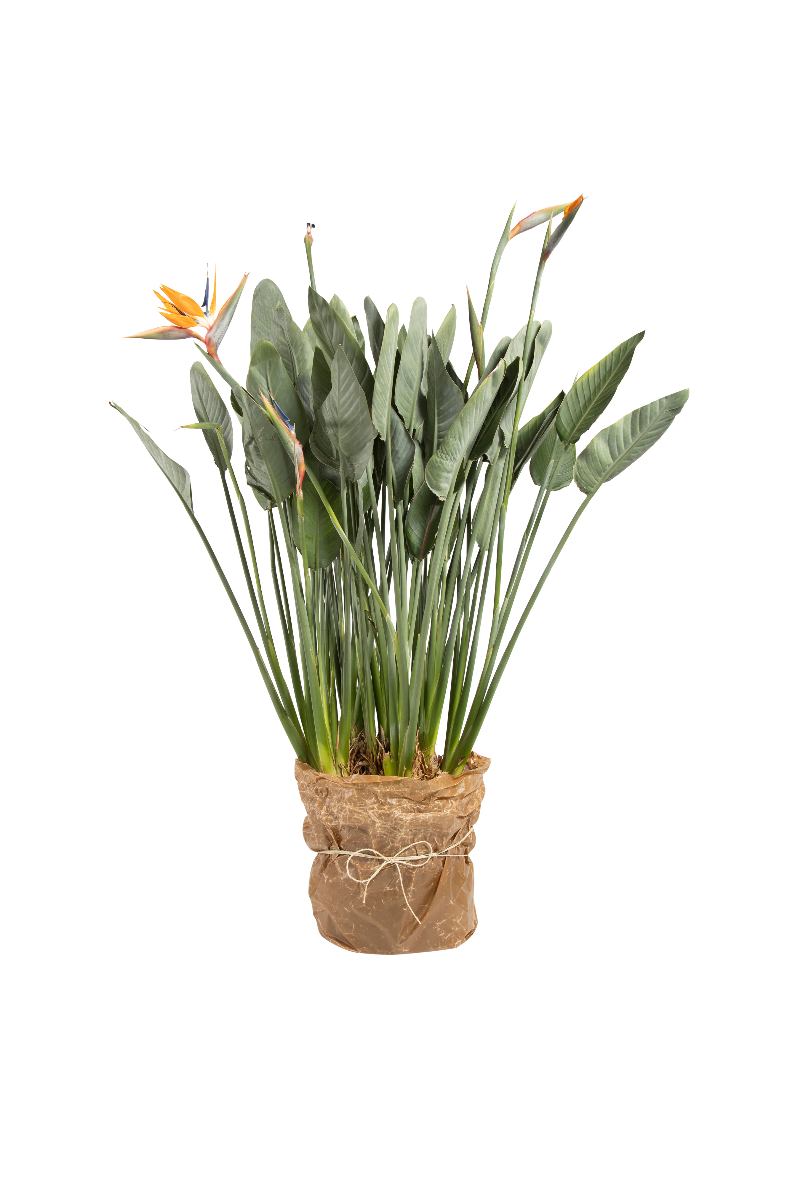 Strelitzia är en fascinerande växt med papegojliknande blommor. Placera mycket ljust. Jorden bör vara väldränerad och näringsrik. Innerkruka i plast, diameter 40 cm.