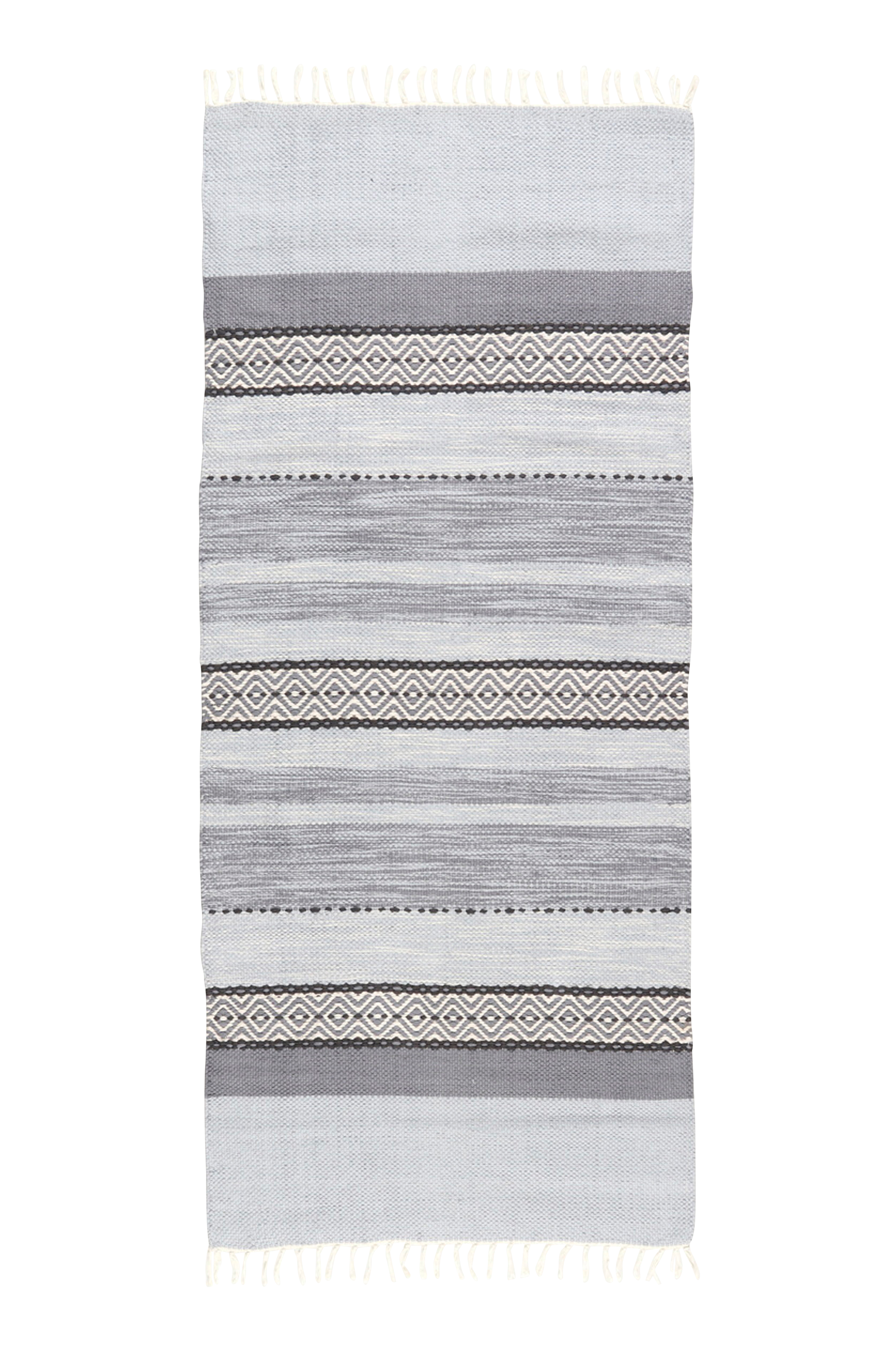 Åby är en randig garnmatta i fin bomullskvalitet. Mattan är vävd i ett randigt mönster som för tankarna till traditionella trasmattor. De randiga partierna har olika bredd, nyans och mönster. Några ränder är vävda i klassiskt gåsögamönster som ger en modern twist till mattans traditionella uttryck. Mattan är en tillverkad i bomullsgarn och har fransar längs kortsidorna. Bomull är ett vackert naturmaterial som även är lätt att sköta. Mattan är tvättbar i 30 grader och kan även vändas med bägge sidor upp vilket är praktiskt om en mindre fläck skulle uppstå. Åby är en lättskött och fräsch matta som passar utmärkt i exempelvis köket, fritidshuset eller tvättstugan.