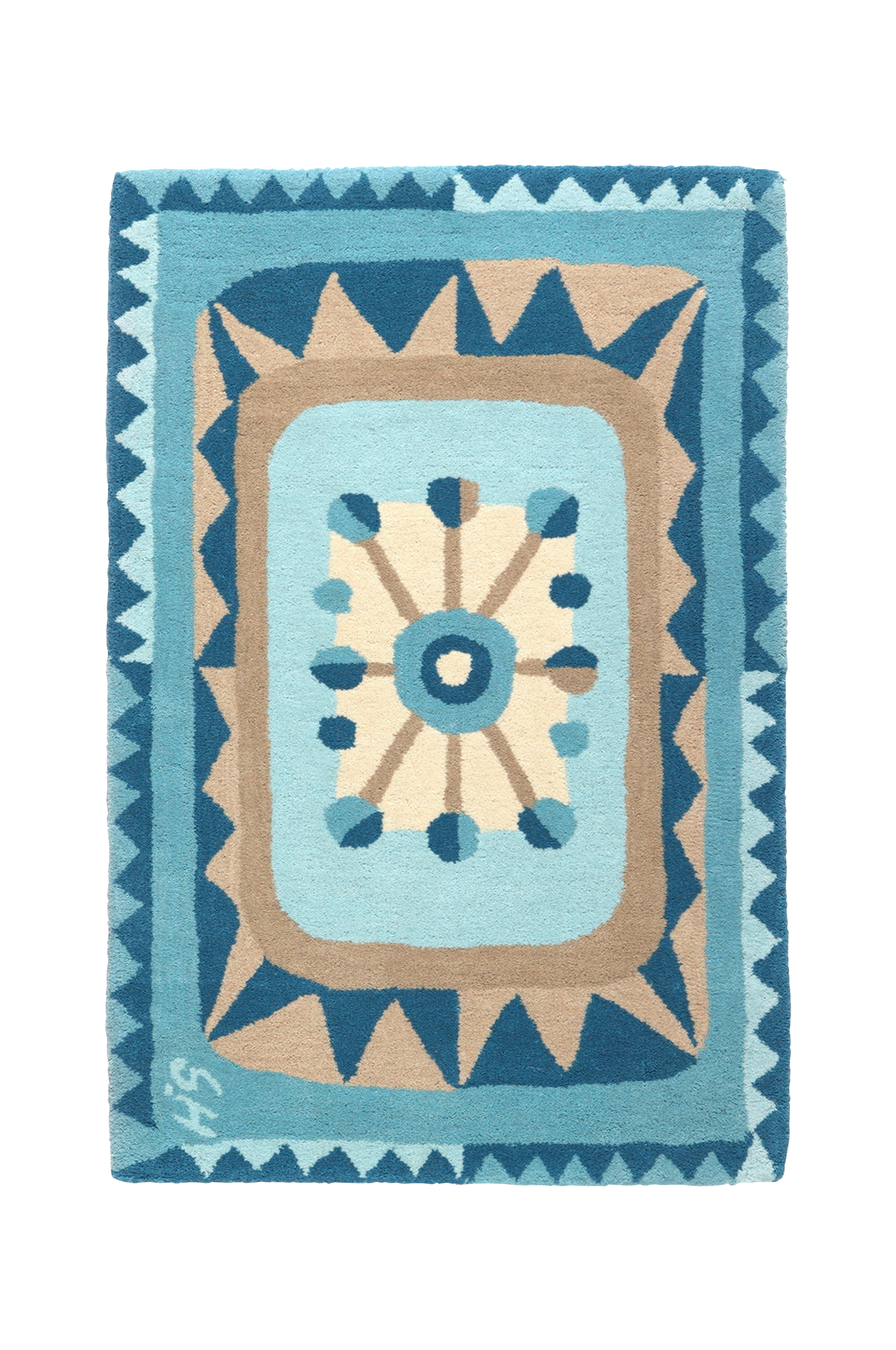 Zigzag är en mönstrad ullmatta designad av formgivaren stina hagström. Mattan är handtuftad och har en tjock och tät lugg av ull med en baksida av bomull för ökad stabilitet. Mönstret är livfullt med sicksack, linjer och runda former.