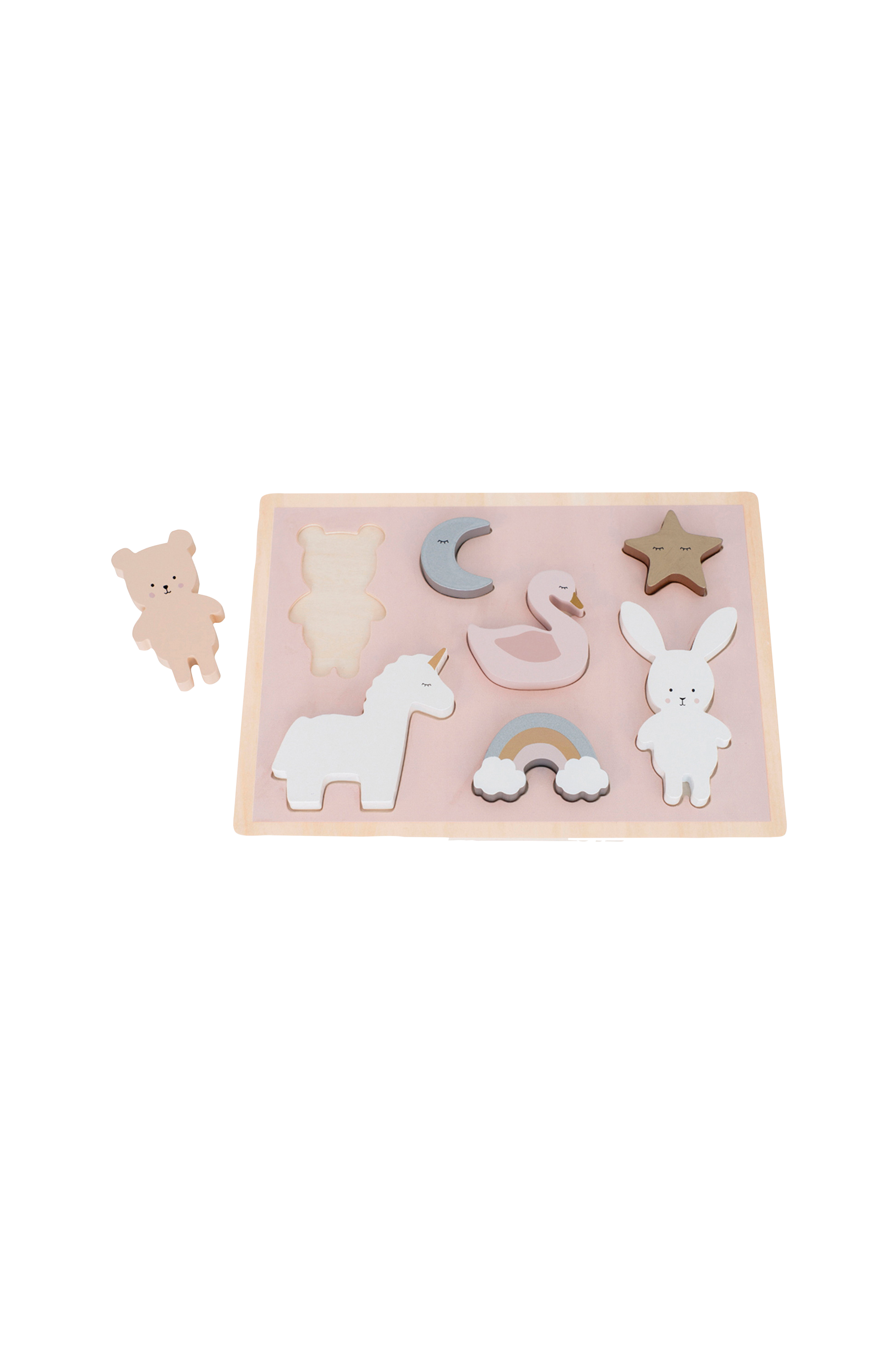 Enhörningspussel i trä med 7 olika bitar.
