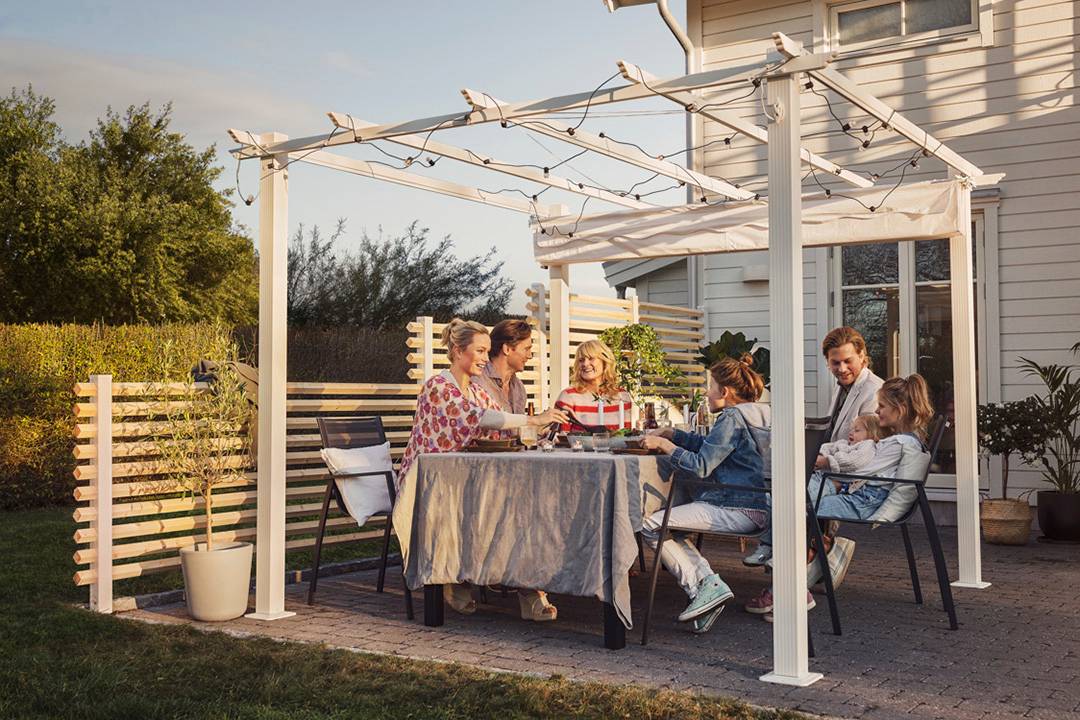 Med ett snyggt och praktiskt pergolatak får du en mer ombonad uteplats. Samtidigt ger det ett svalt skydd under sommarens varmaste dagar - visst montage krävs. 3x3 m Grå