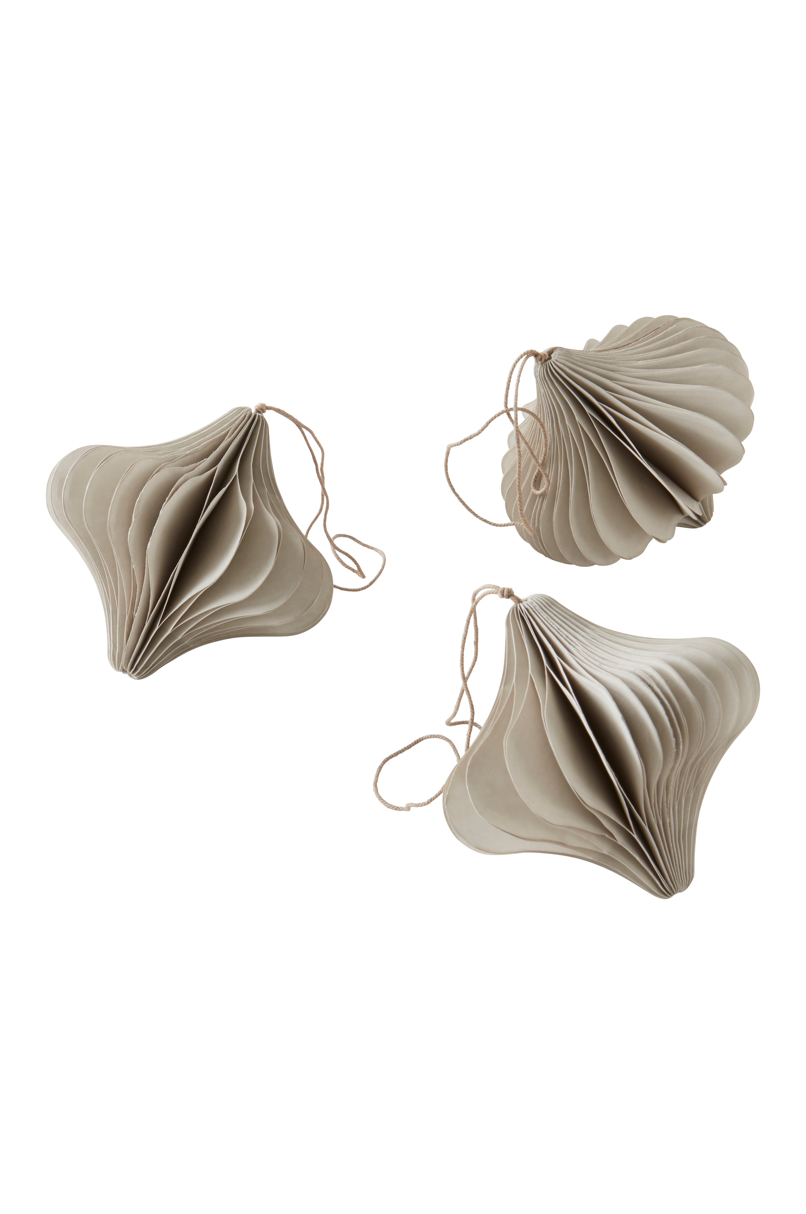 3-pack med dekorationer av papper med ögla upptill så du kan hänga dem i ett fönster, i julgranen eller där du vill dekorera lite extra. De kommer i en pappersask.