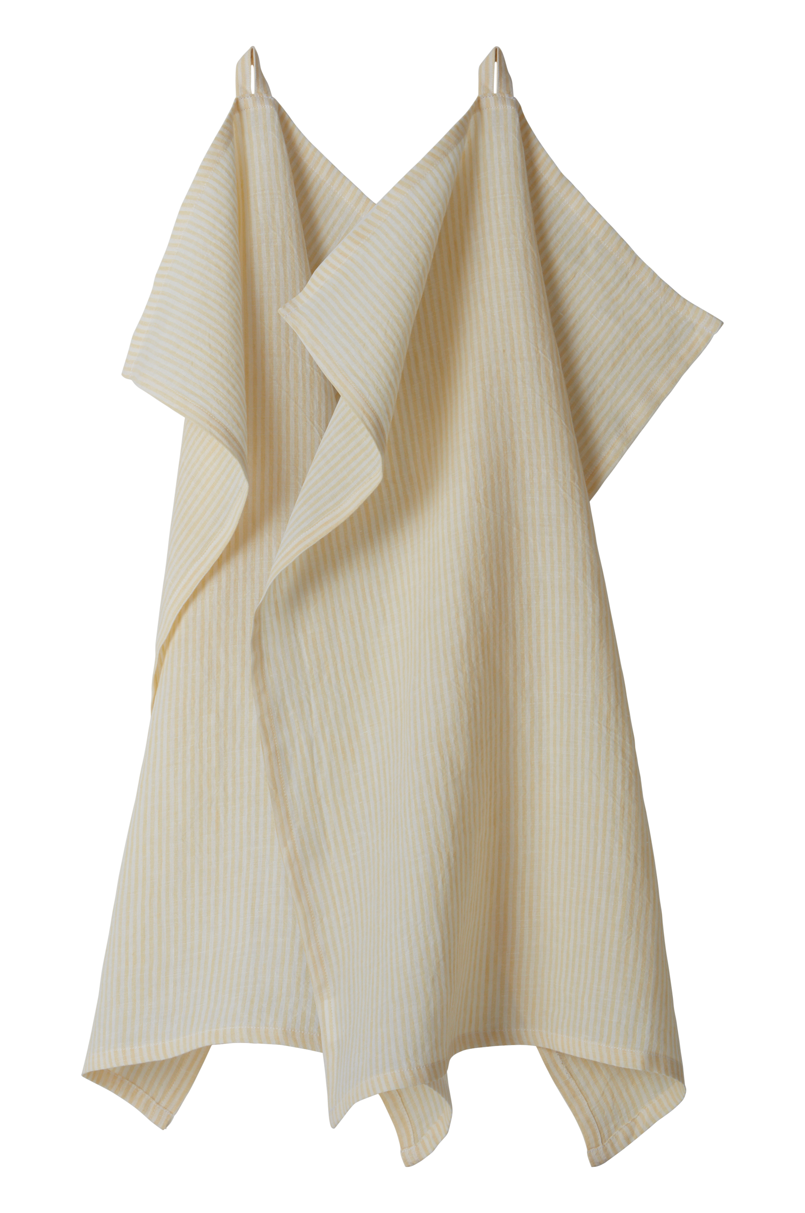 2-pack kökshanddukar i randvävt linne. Den garnfärgade randen i kombination med linne ger en rustik och naturlig känsla. Tyget är lättskött och du väljer om du vill ha en slät, struken look eller en avslappnat ostruken stil.
