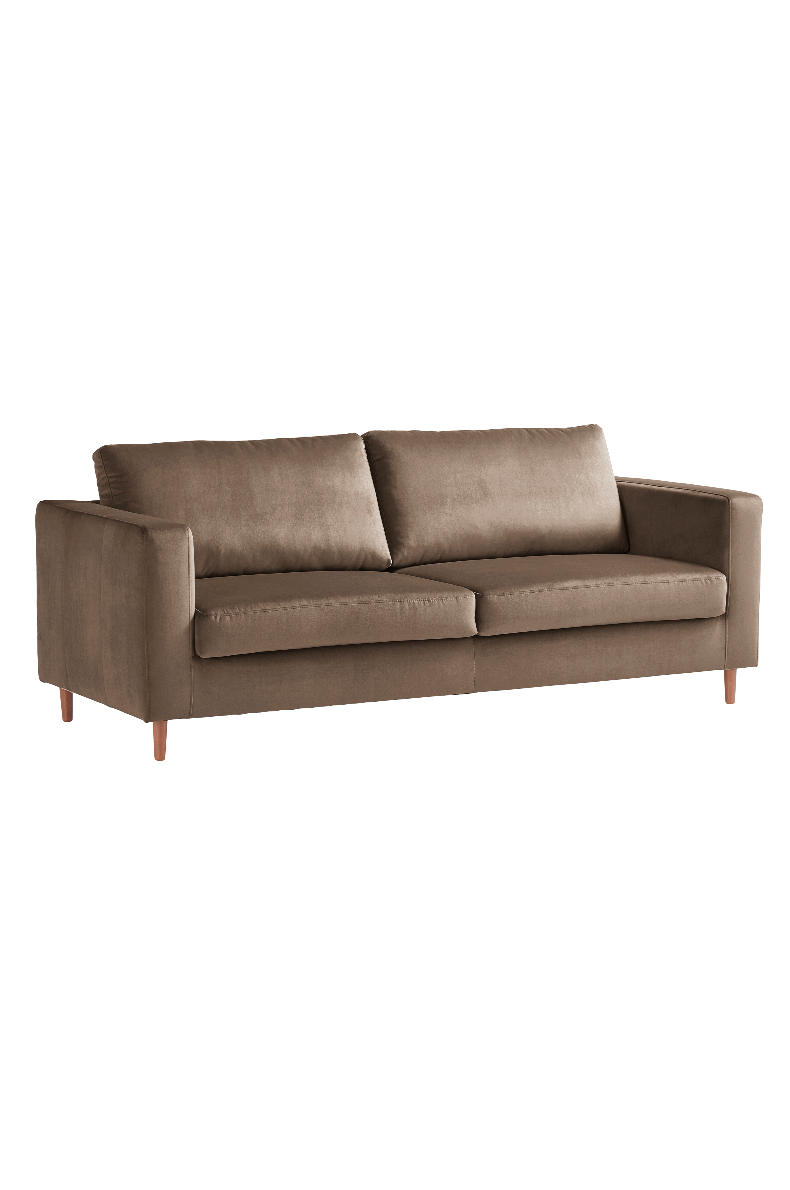 Sammetsoffan ALLEGRA signalerar "Less is more" och det är sammesklädseln i 100% polyester, enkelheten och den goda komforten som gör denna 2,5-sitssoffa till en favorit i ditt hem. ALLEGRA har två ryggkuddar, stabil stomme av furuträ och plywood med god sittkomfort tack vare sin fantastiska uppbyggnad av kallskum, zickzackfjädring, resårband samt den sköna stoppningen av polyester.