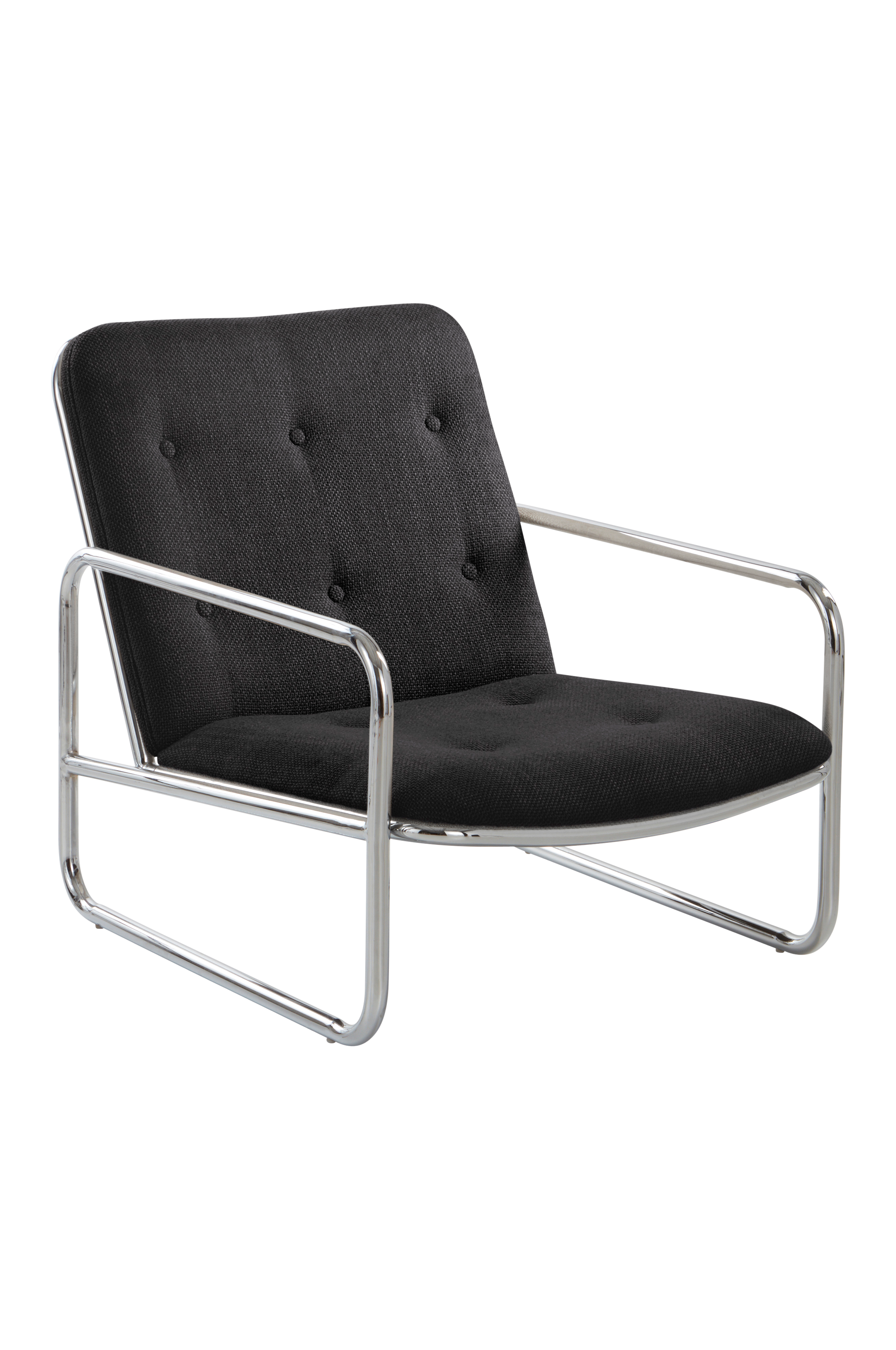 ALMELO loungestol är en lite lägre fåtölj med stomme av kraftiga, kromad järnrör. Sits och ryggstöd är mjukstoppade och klädda med slitstarkt tyg av polyester/akryl. Tyget är slitstarkt med Martindale på 50000. ALMELO har skön retrokänsla med mixen av krom och kraftigt tyg, djuphäftade knappar och den sköna modellen. Du sitter lågt och behagligt i ALMELO. Klädseln är ej avtagbar. Viss montering krävs. Monteringsanvisning medföljer.