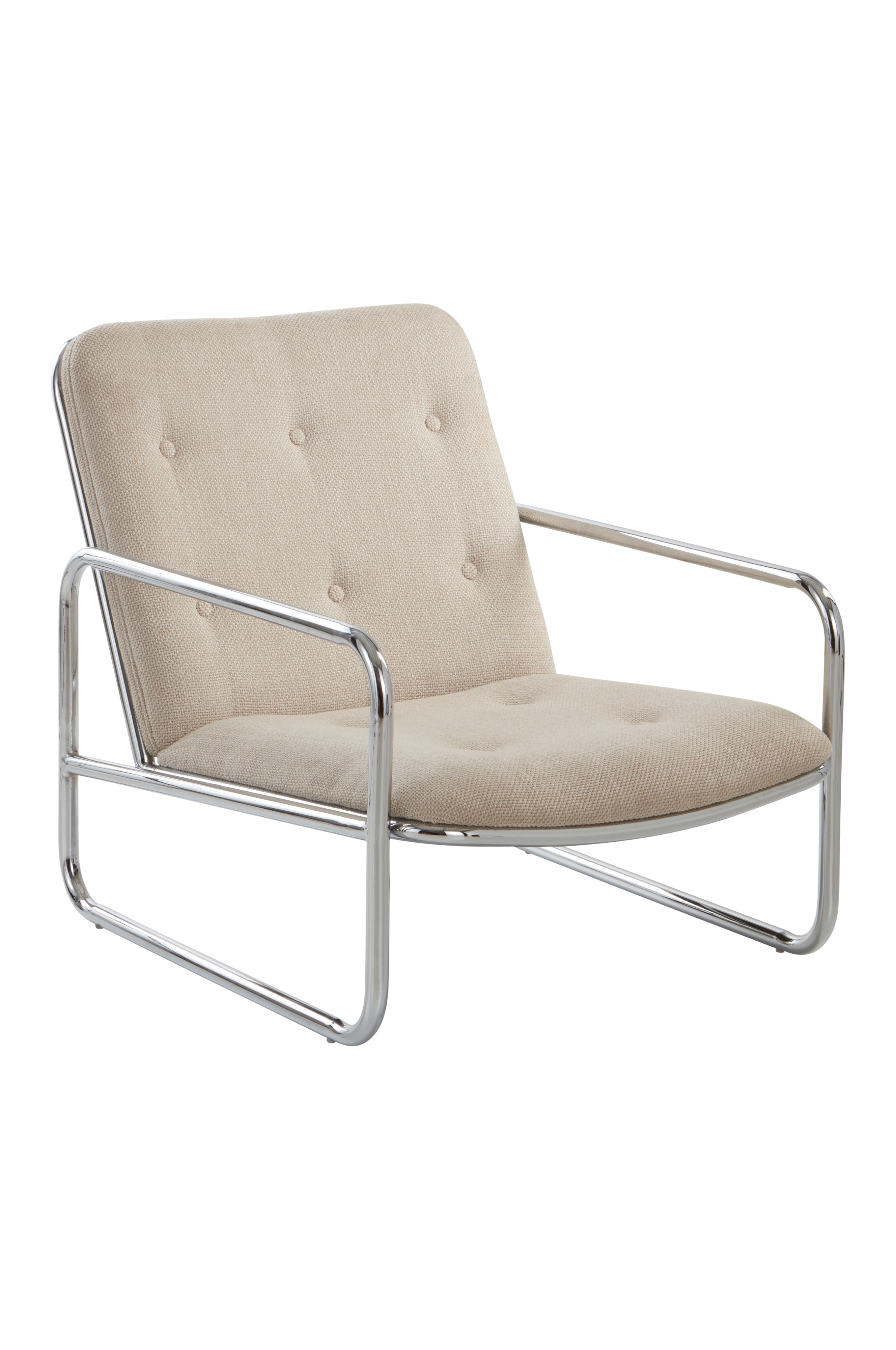ALMELO loungestol är en lite lägre fåtölj med stomme av kraftiga, kromad järnrör. Sits och ryggstöd är mjukstoppade och klädda med slitstarkt tyg av polyester/akryl. Tyget är slitstarkt med Martindale på 50000. ALMELO har skön retrokänsla med mixen av krom och kraftigt tyg, djuphäftade knappar och den sköna modellen. Du sitter lågt och behagligt i ALMELO. Klädseln är ej avtagbar. Viss montering krävs. Monteringsanvisning medföljer.