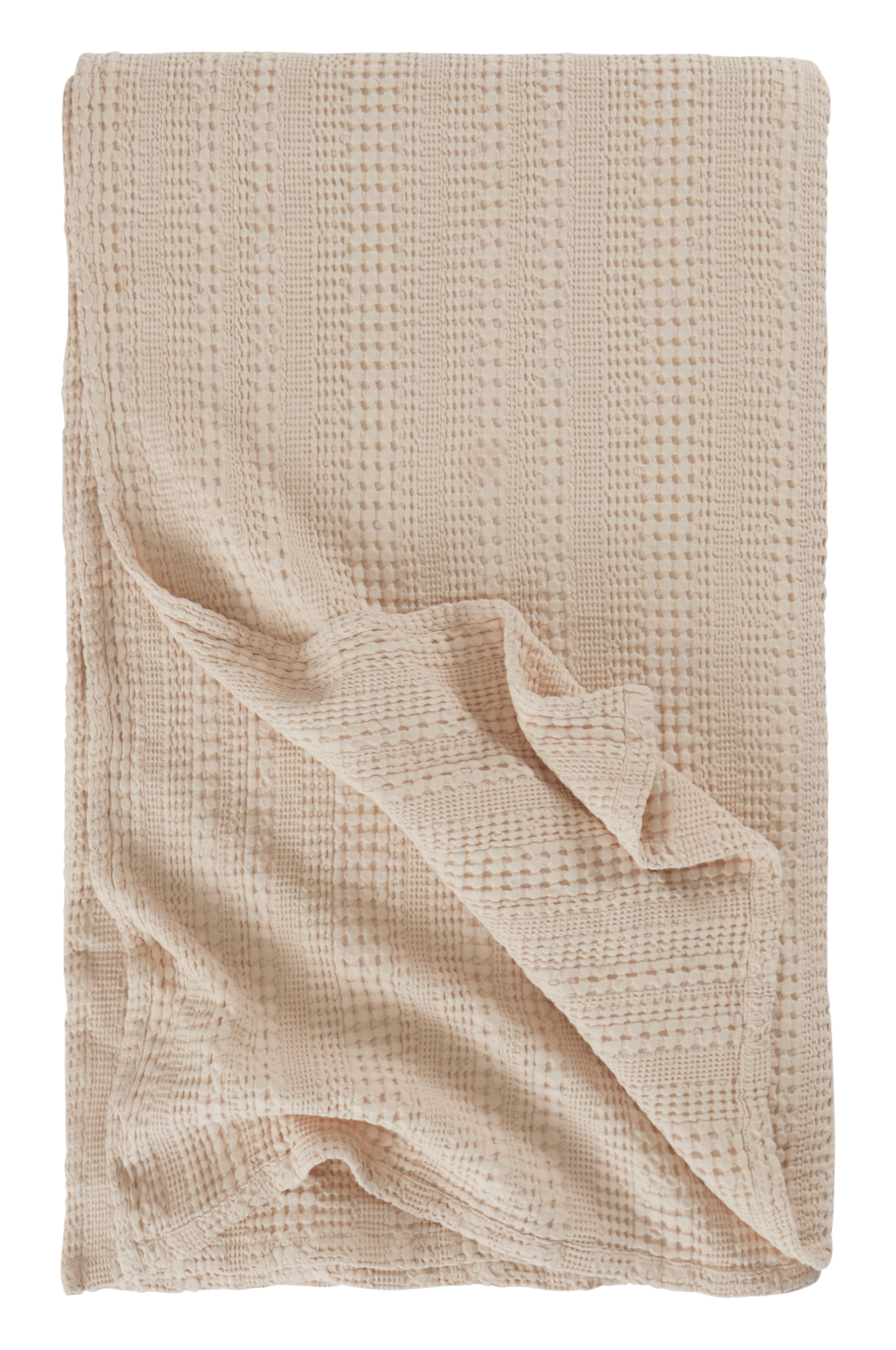 Överkast i härligt mjuk och lätt bomull med mixat våffelmönster som ger fint randmönster. Överkastet passar till enkelsäng och är plaggtvättat vilket innebär att det tvättats efter sömnad för att bli extra mjukt och följsamt. Ett lite bubbligt och livfullt överkast är lika fint när sängen är bäddad som när det ligger löst och ledigt över fotänden på sängen eller får vara pläd på soffans armstöd.