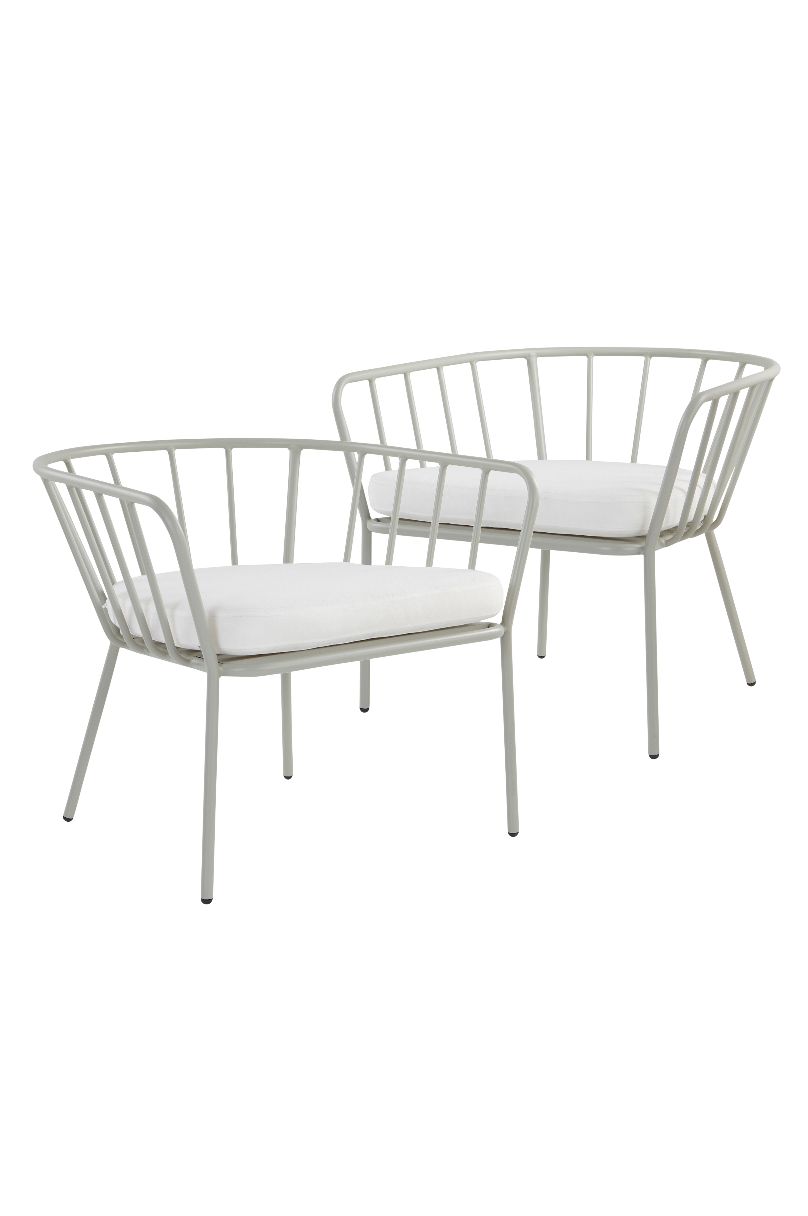 2-pack loungestolar av pulverlackerad aluminium med matt yta. Att fika ute hör våren och sommaren till, och då ska det vara enkelt. ANTIBES är en praktisk utomhusmöbel som tål väder och vind, så du slipper bära den in och ut. Stolarna har matt färg som inte reflekterar solen på ett bländande sätt. Sittdyna medföljer.