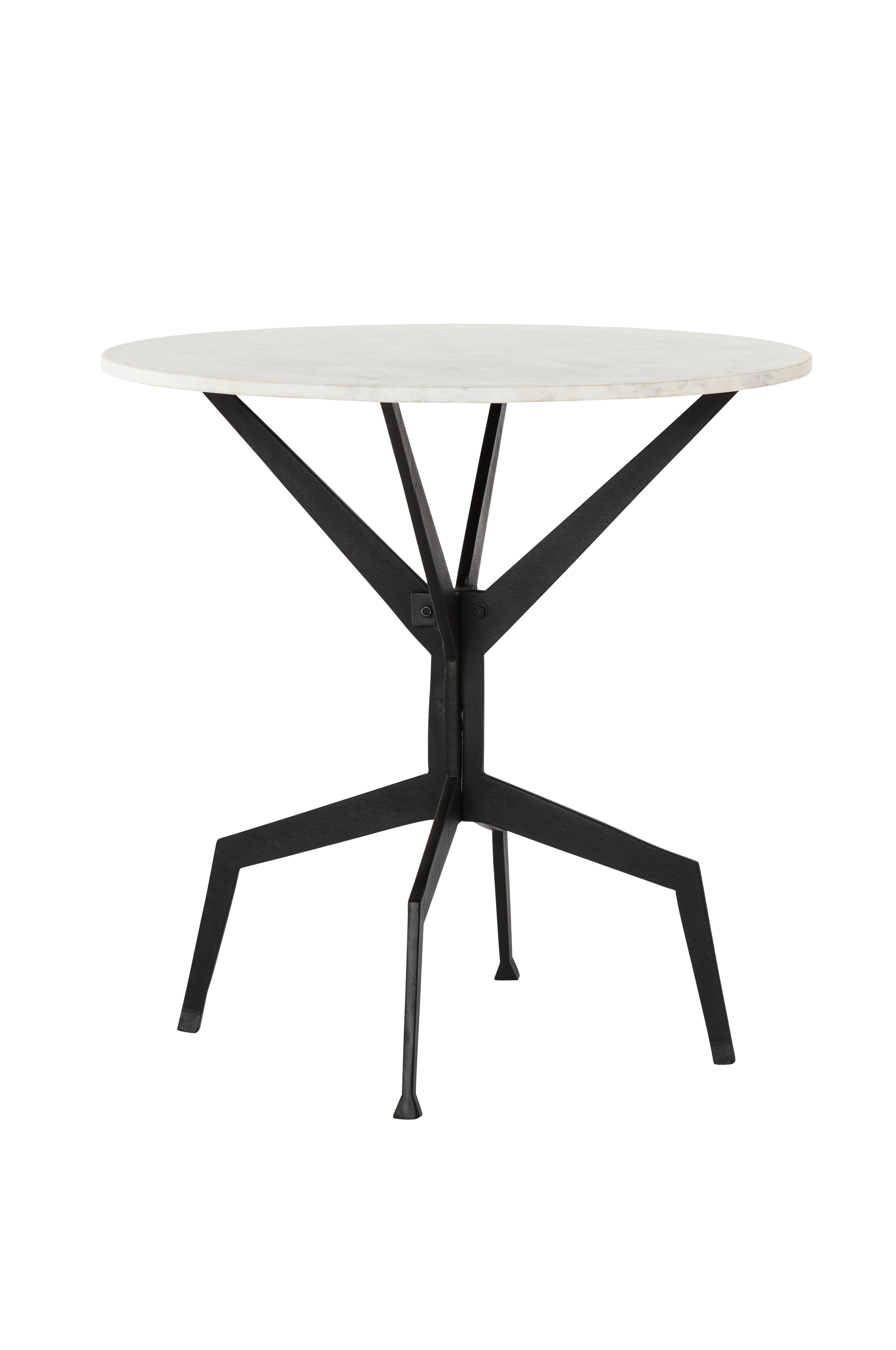Runt matbord med bordsskiva av marmor och underrede av järn med matt, svart yta. Marmor är klassiskt och med rätt skötsel bevarar du det fint länge. Underredet av järn är en snygg kontrast till bordsskivan både när det gäller den kantiga formen och det ruffa materialet, en snygg mix. Marmor är en natursten och mönstret varierar alltid lite beroende på bergartens sammansättning, vilket gör varje möbel unik. Viss montering krävs.