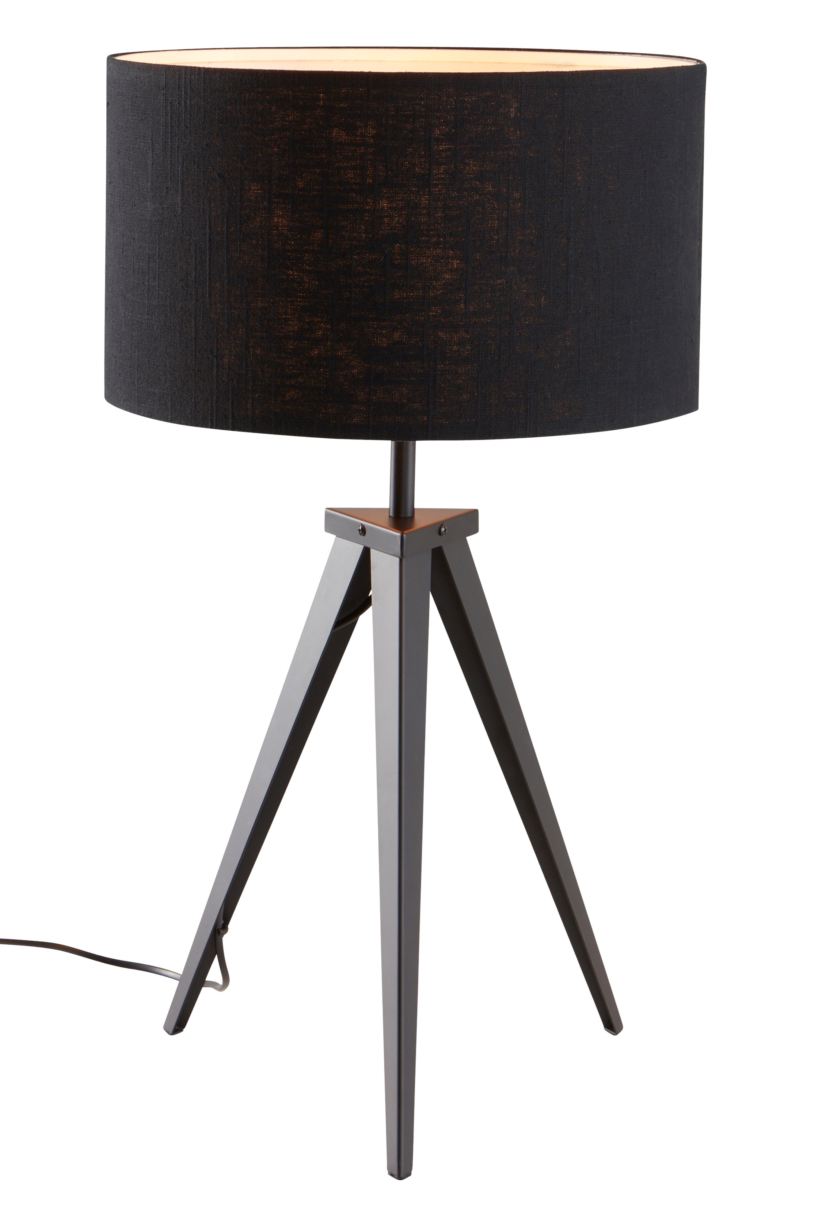 Bordslampa med trebent metallfot med matt yta. Stilren, rak linneskärm ger en klassisk känsla. De snyggt formade benen ger en nätt utstrålning och matchar lampskärmen på ett smakfullt sätt. Detta är en lampa som står sig över tid och du kommer att få glädje av den länge. Svart plastsladd med strömbrytare på sladden och väggkontakt. Viss montering krävs.