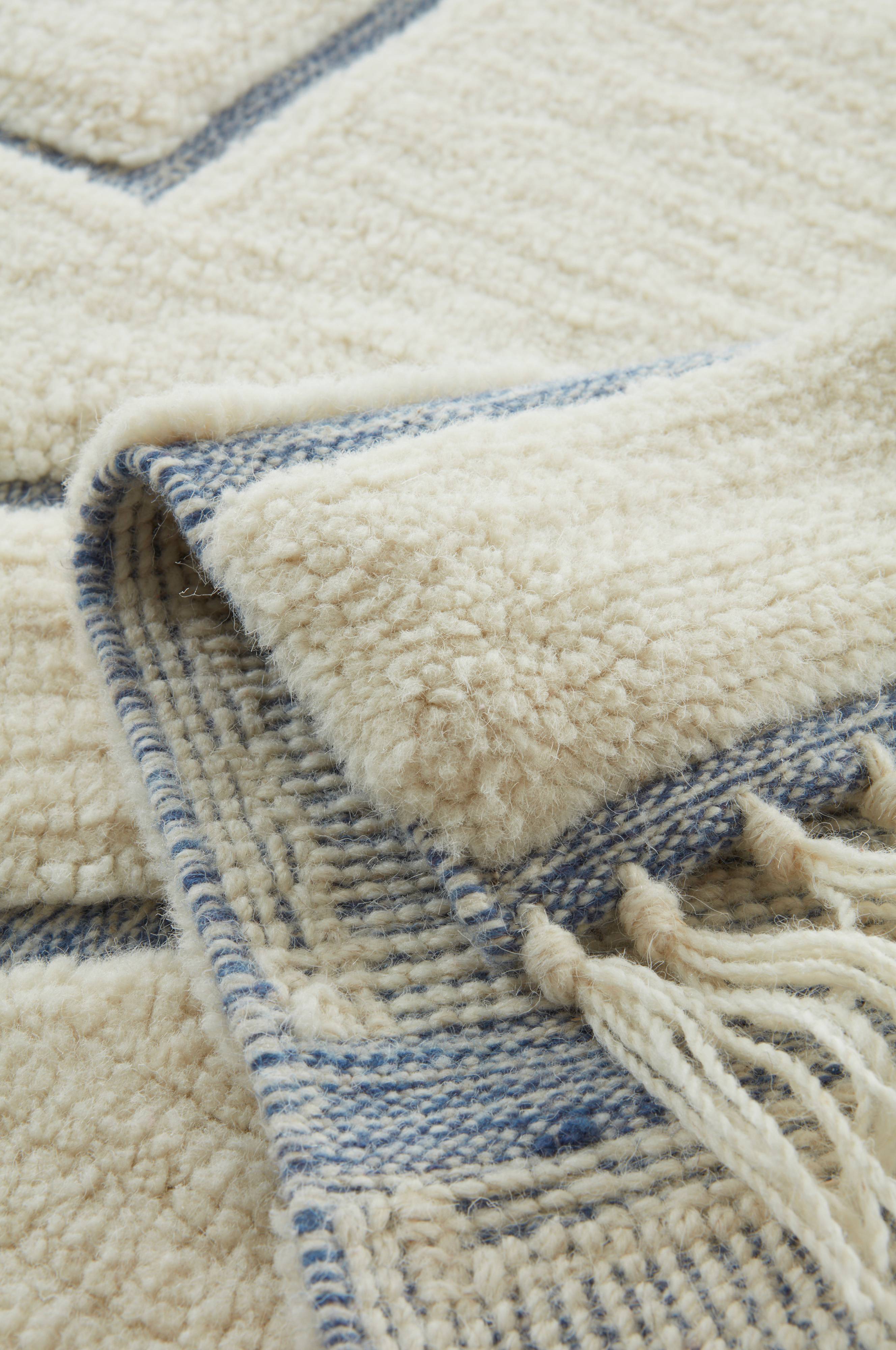 AZALEA är en tuftad ullmatta med tät, vit lugg på slätvävd botten i vacker blåmelerad färg. Mattans mönster skapas av vävtekniken där tuftade partier varvas med vävd botten. Mattan har knuten frans. Ullmattor är naturligt varma och praktiskt smutsavvisande, ull är ett praktiskt alternativ. Denna mattan har liten inblandning av bomull. Franslängd 10 cm. Lugghöjd 1 cm. Tjocklek 1,1 cm. 2000 g/m².