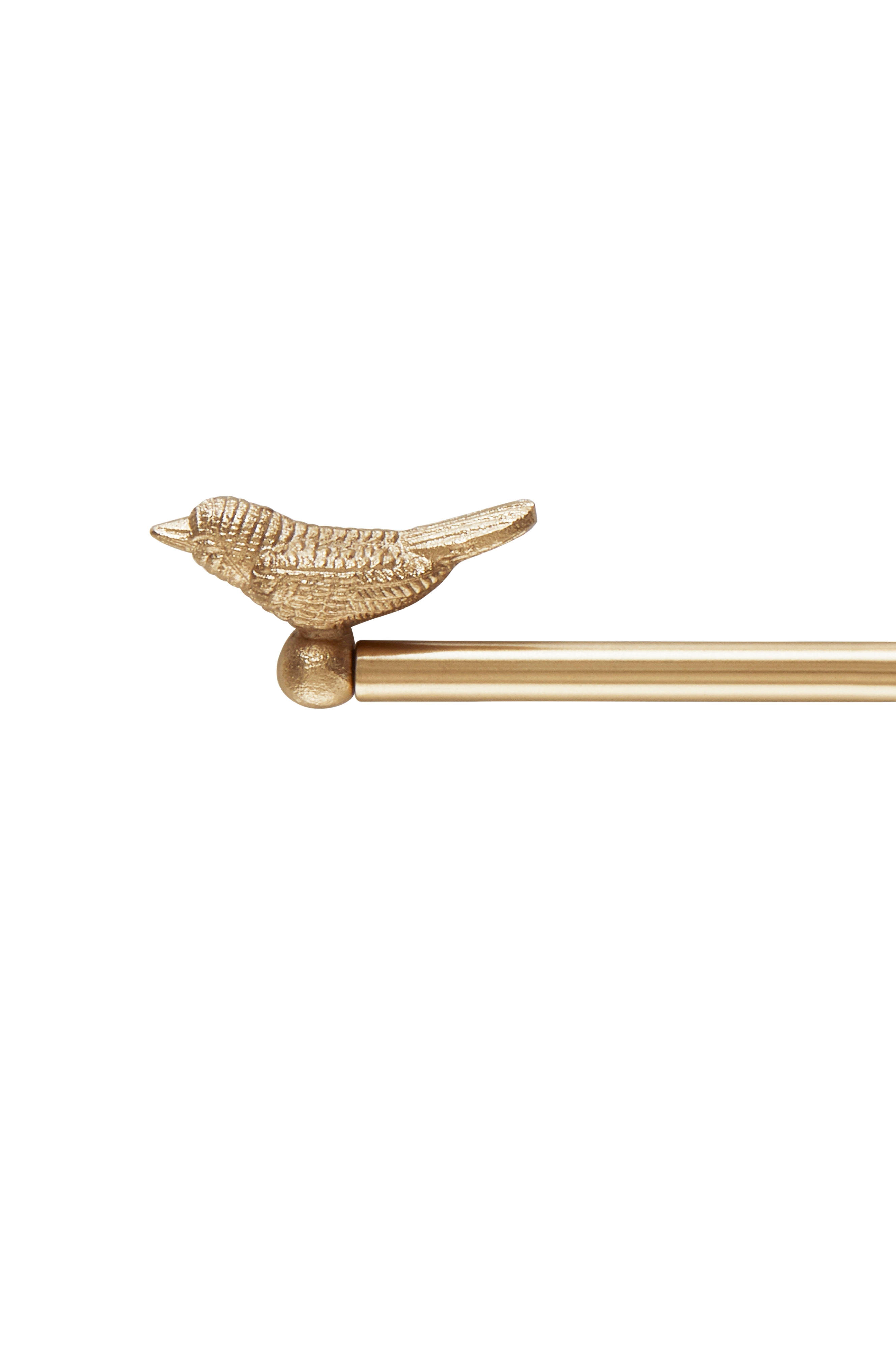 Gardinstång och änddekor av metall. BIRDY har en liten, fin fågel som knopp i vardera änden. Ändknopparna skruvas på gardinstången. Två väggfästen, skruvar och plugg ingår. Observera att det alltid är underlaget som bestämmer vilken typ av infästning som är bäst lämpad för montering.