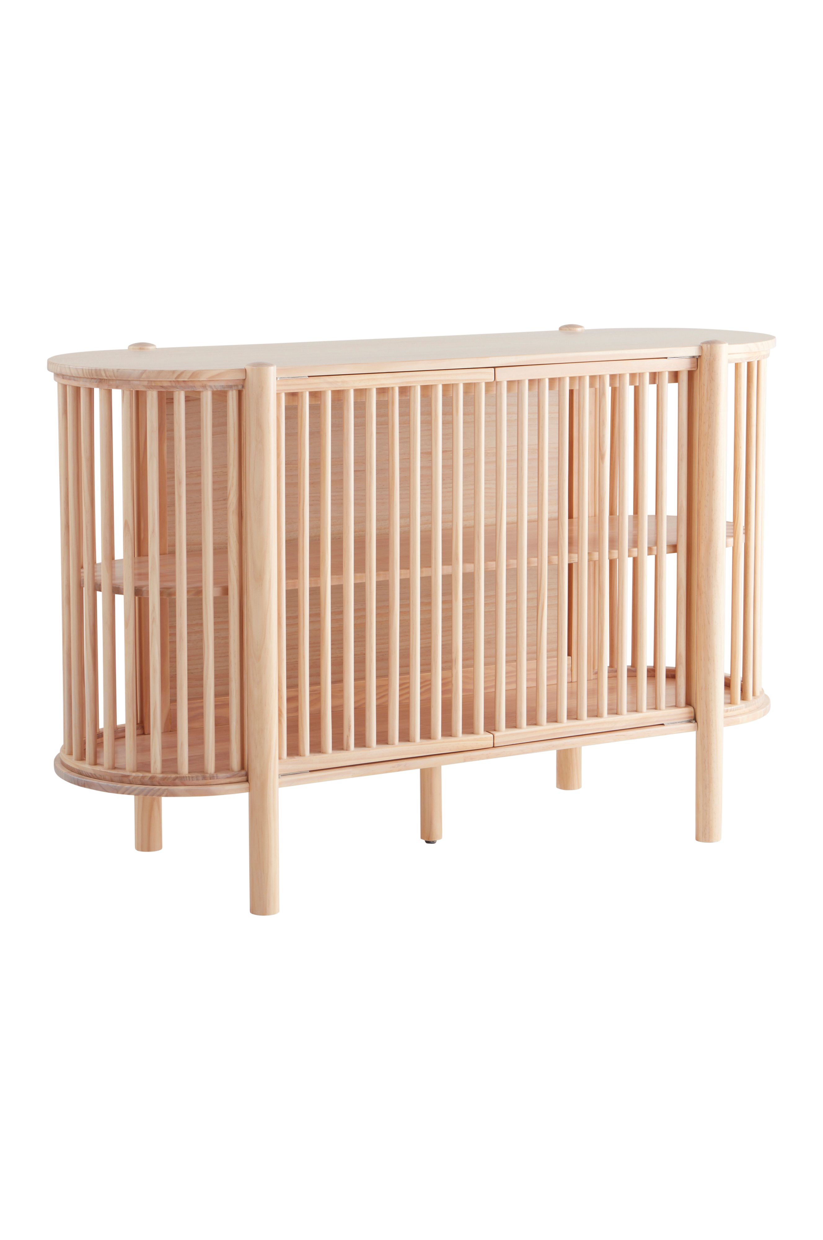Storlek: Höjd 90 cm, bredd 140 cm, djup 50 cm. Frihöjd under möbel: 19 cm. Ribbor ø 9 cm.